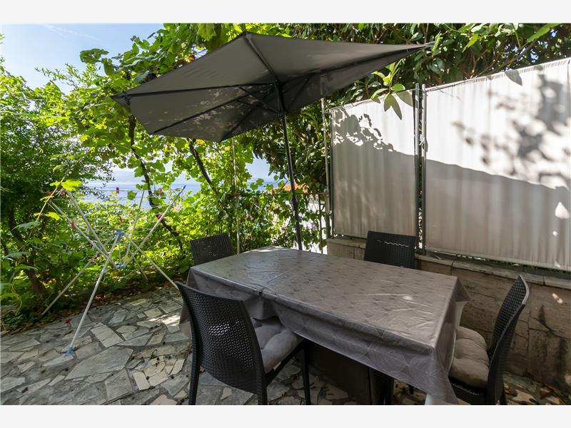 Solid møbleret lejlighed med dejlig terrasse og udsigt. Omkring lejligheden, masser af grønne områder, og også på varme dage ophold behageligt. Noget foruroligende er det store antal trin. Stranden er meget smuk og dekoreret (både stranden nedenfor lejlighederne som en sten 50m væk), havet er meget ren. Ejere er meget venlige, gæstfri og altid tilgængelig. Vi tilbragte en meget dejlig ferie. Anbefales til familier og dem, der ønsker at tilbringe en rolig ferie. Tak igen for din gæstfrihed. Familie Planko