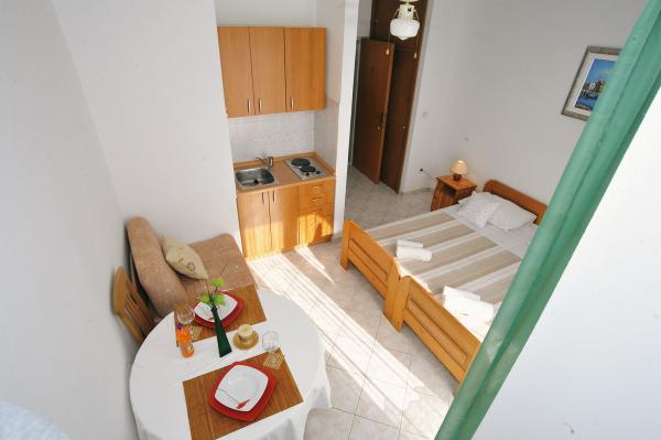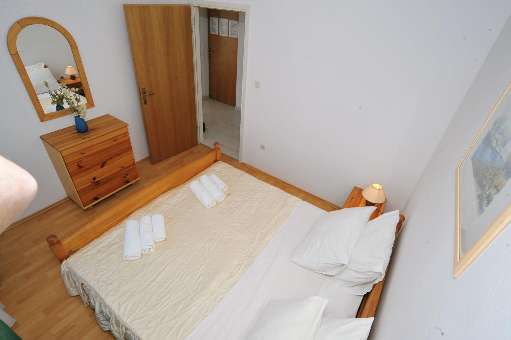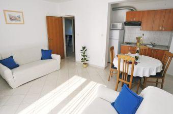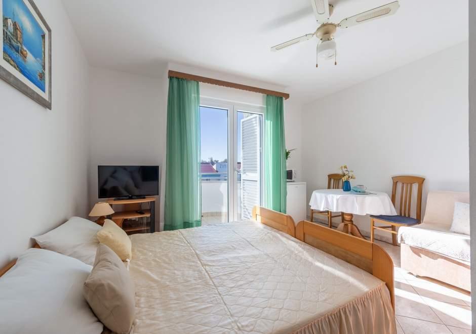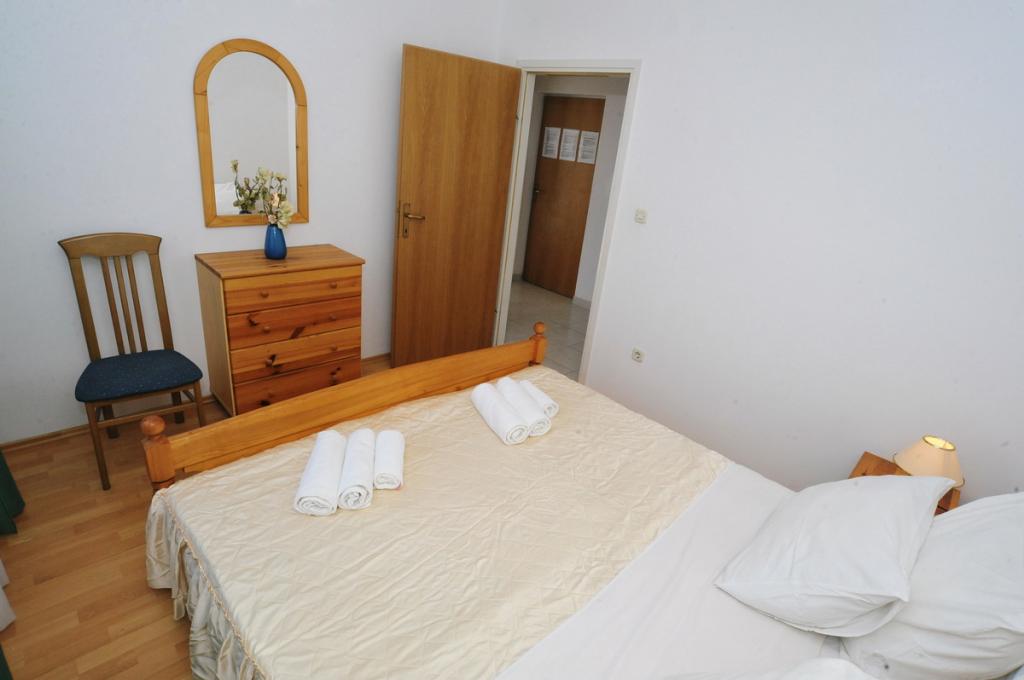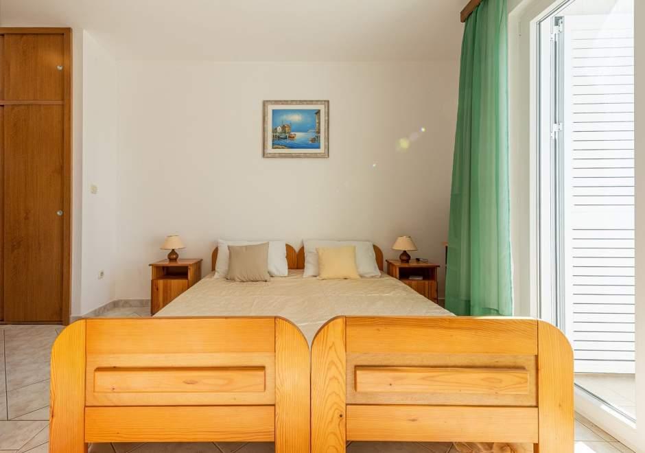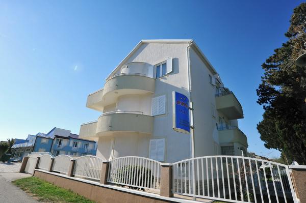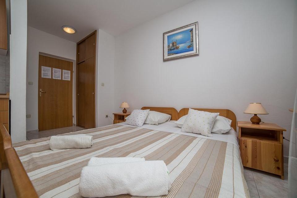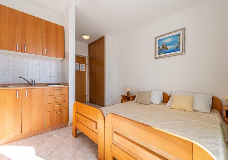 Moderne udstyret hus med 9 boligenheder: 6 lejligheder med et soveværelse og en stue med to ekstra udtrækssenge, en to-personers og en tre-personers, samt et udstyret køkken, et badeværelse med bruser og en stor altan med bord og stole. Der er et stort klædeskab i gangen. 3 studier er designet til to personer, de er også fuldt udstyret: badeværelse med bruser, stort klædeskab, køkken og en mindre balkon med bord og stole. Alle lejligheder har aircondition Huset ligger 3 minutters gang fra havet, eller 5 minutters gang til den store sandstrand (Kraljičina plaza).