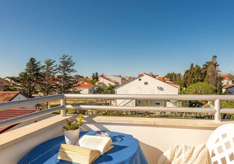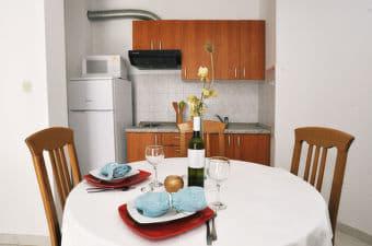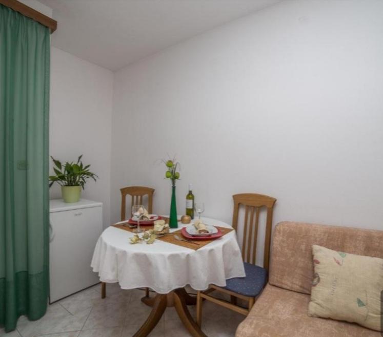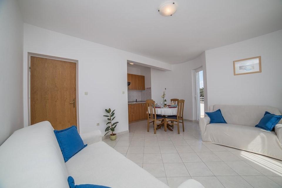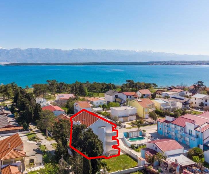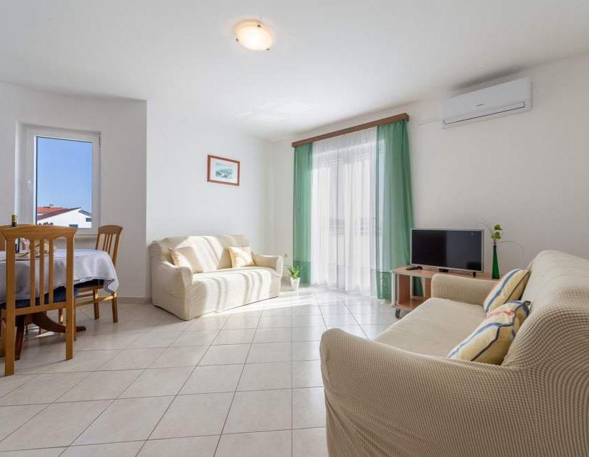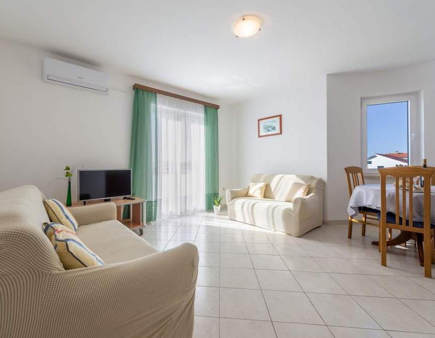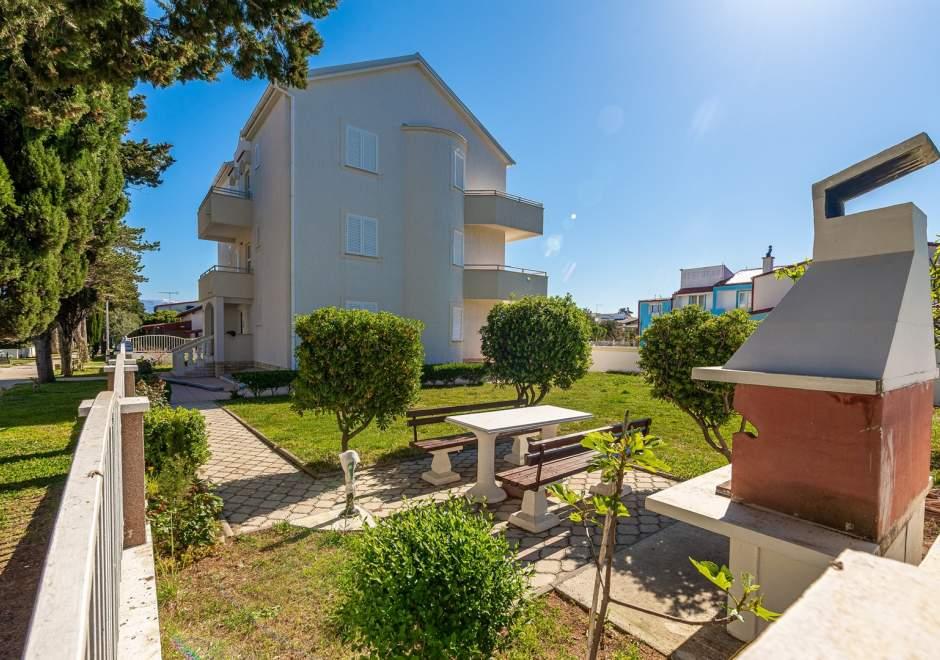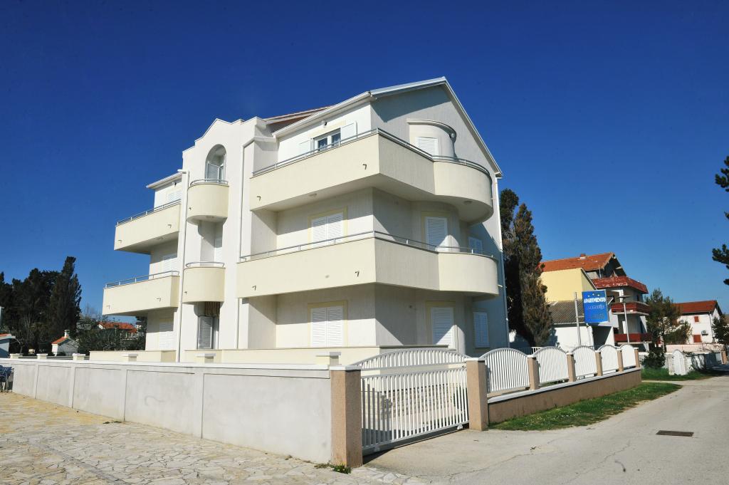 Moderne udstyret hus med 9 boligenheder: 6 lejligheder med et soveværelse og en stue med to ekstra udtrækssenge, en to-personers og en tre-personers, samt et udstyret køkken, et badeværelse med bruser og en stor altan med bord og stole. Der er et stort klædeskab i gangen. 3 studier er designet til to personer, de er også fuldt udstyret: badeværelse med bruser, stort klædeskab, køkken og en mindre balkon med bord og stole. Alle lejligheder har aircondition Huset ligger 3 minutters gang fra havet, eller 5 minutters gang til den store sandstrand (Kraljičina plaza).