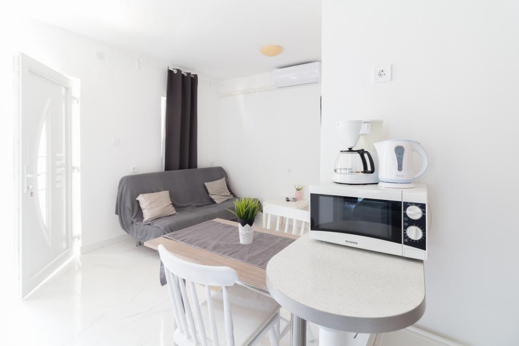 Casa Tea ligger i hjertet af maleriske Privlaka, mere præcist, i den lille by Sabunike, som er kendt for sit klare hav og talrige lavvandede bugter, hvilket gør familier med små børn glade for at vælge dette feriested. En særlig attraktion er en lang sandstrand med en kilde til helbredende mudder. Den møblerede lejlighed tilbyder sine gæster alt, hvad de har brug for til en afslappet og aktiv ferie, og alt, hvad de har brug for, er i umiddelbar nærhed - et marked, et bageri, en frugtbutik, restauranter og caféer. Har gæsterne lyst til at forsøge sig med windsurfing, kan de besøge sejlerskolen i hyggelige Nin, som kun ligger få minutters kørsel fra lejligheden, og på ti minutter i bil kan man komme til Zadar for en aftentur. Hele lejligheden har aircondition og har et fremragende wi-fi-netværk og består af to soveværelser, en stue med en sovesofa til to personer, en åben spisestue, et badeværelse og et fuldt udstyret køkken. Den kan rumme op til seks personer, og gæsterne behøver ikke at bekymre sig om parkering. Gæsternes yndlingssted bliver terrassen, som rummer et stort bord med stole, liggestole og komfortable udendørsmøbler til morgensamlinger med kaffe eller hvile med en bog. De har også en grill til deres rådighed - en perfekt mulighed for hyggeligt socialt samvær i den friske luft. Det er muligt at arrangere en udflugt til et af de attraktive nærliggende steder eller en sejltur på det krystalklare hav. Casa Tea indeholder alt, hvad der vil give gæsterne en unik ferieoplevelse.