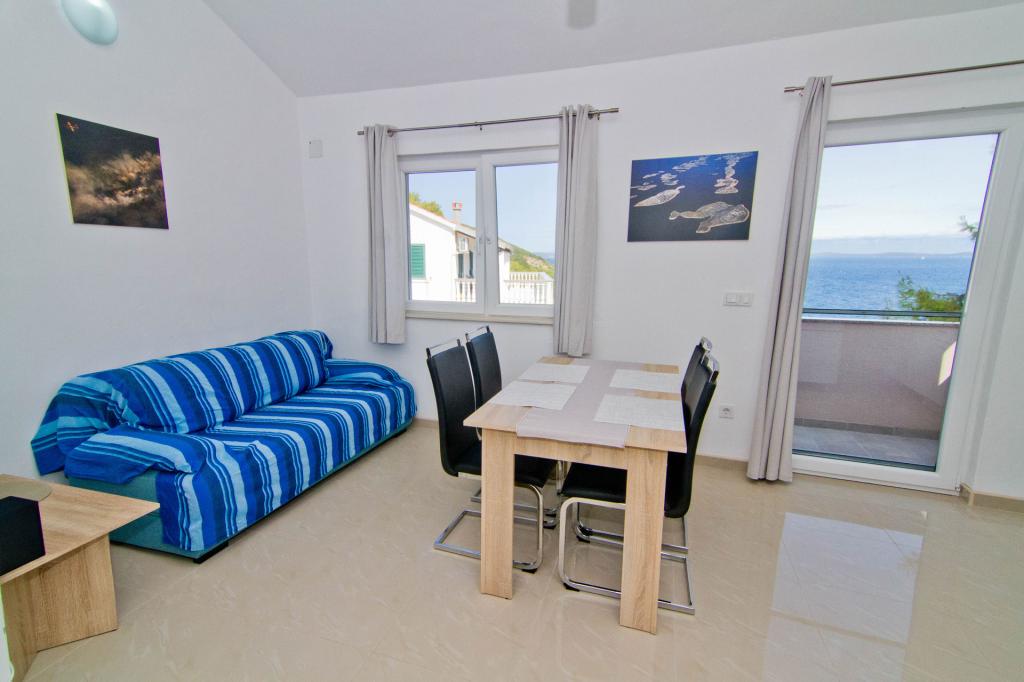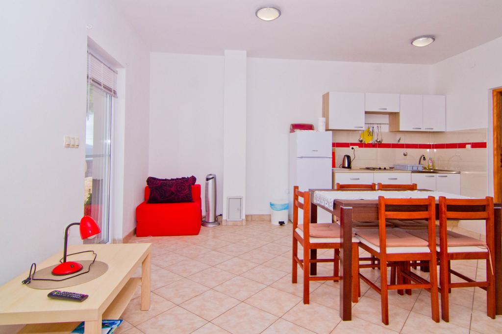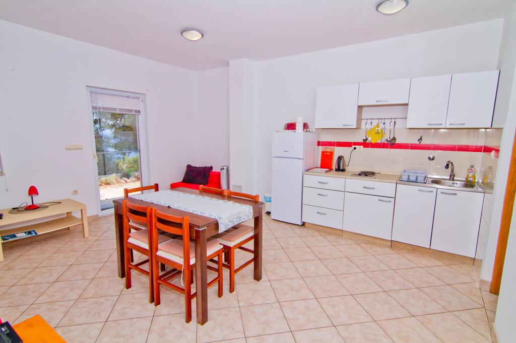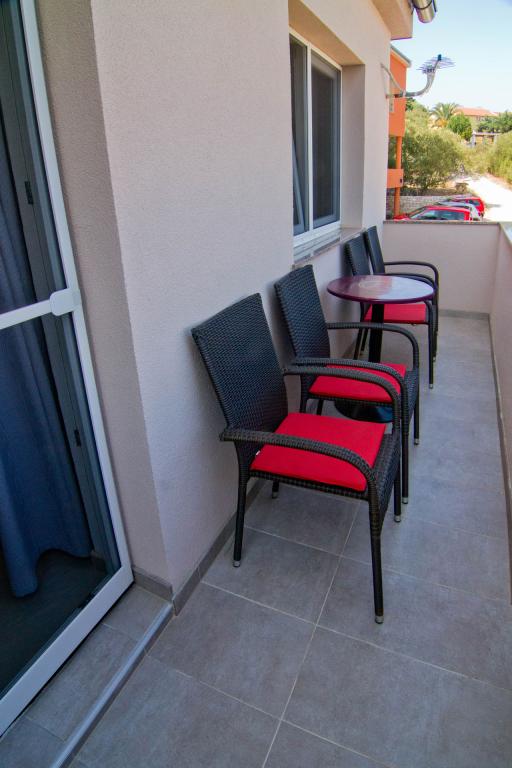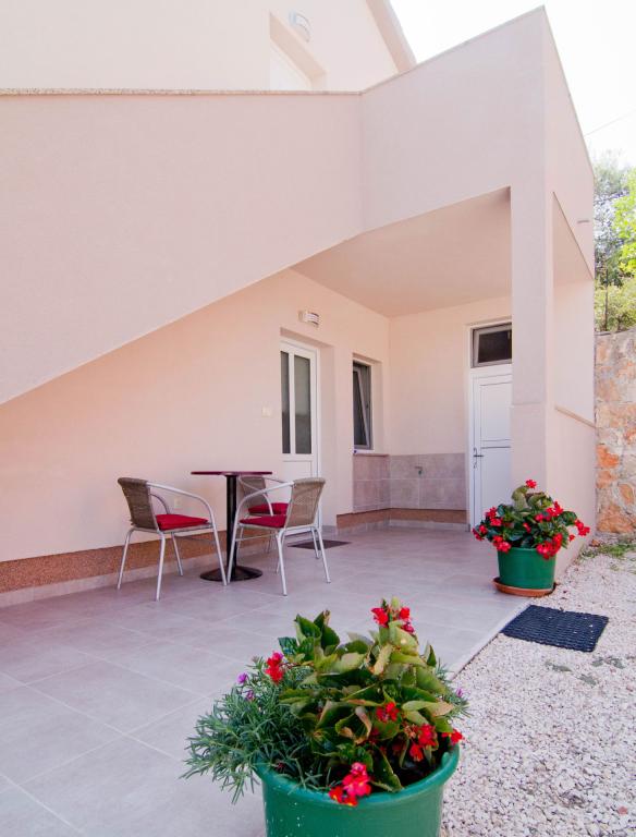 Lejligheder beliggende i en ny bygning i en stille gade med en smuk udsigt over havet, øerne og Velebit. Hver lejlighed har en separat indgang. Lejlighederne er fuldt udstyret til en hyggelig sommerferie og har én parkeringsplads i gården. De er udstyret med et tv og et trådløst netværk (Wi-Fi). Sengelinned og håndklæder er inkluderet i lejeprisen. Garanteret brug af grillen i gården. Lejlighed 4, aircondition, 45 m2, beliggende på første sal, har et soveværelse med dobbeltseng og et børneværelse med to senge hver. Altanen er 6 m2 og terrassen 9 m2. Køkkenet forbundet med spisestuen er udstyret med grundlæggende køkkenmaskiner, madlavnings- og serveringsredskaber. Lejlighed 2+2, aircondition, overflade 45 m2, er beliggende i stueplan og har soveværelse med dobbeltseng og mulighed for dobbeltseng i stuen. Terrasse på 9 m2. Køkkenet forbundet med spisestuen er udstyret med grundlæggende køkkenmaskiner, madlavnings- og serveringsredskaber. Kæledyr er ikke tilladt