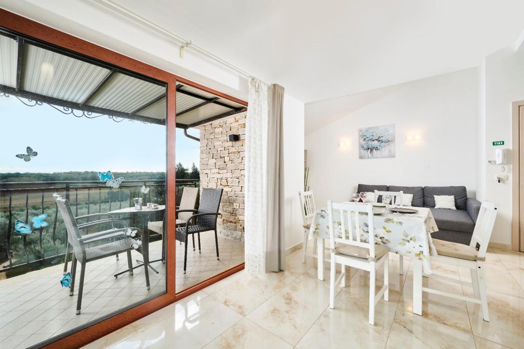 Moderne og veludstyret lejlighed med to soveværelser. Et værelse med dobbeltseng, det andet med køjeseng. Åben og luftig stue, køkken med opvaskemaskine, badeværelse med vaskemaskine. Terrasse, aircondition, wifi, satellit-tv. Swimmingpool, privat parkering, overdækket grill. Afstand fra restaurant 300 meter, afstand fra stranden 1300 meter.