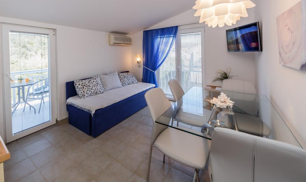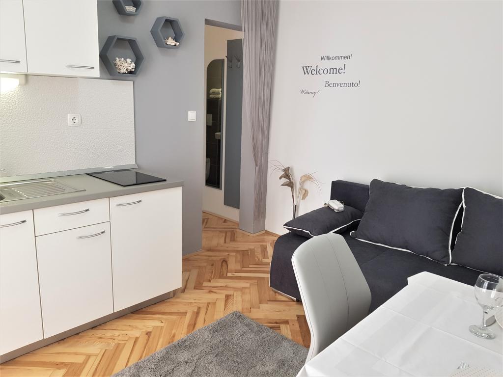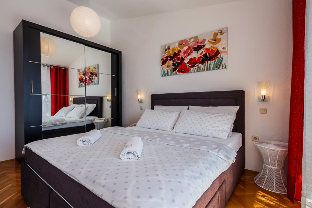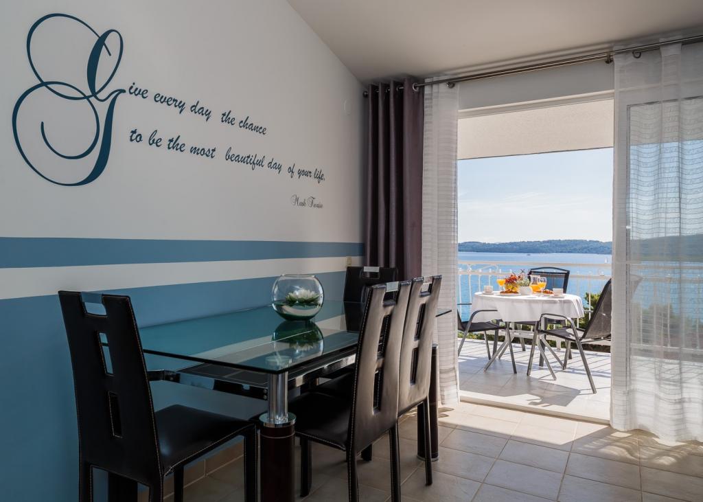 Adriatic Sea View Apartments ligger i hjertet af Dalmatien, i den lille fiskerlandsby Seget Donji med en lang turisttradition, 2 km fra Unesco-byen Trogir og 22 km fra Split og Diocletians Palads. Vi har fem komfortabelt indrettede og pænt udstyrede lejligheder, tilpasset vores gæsters behov. Fremragende beliggenhed af bygningen, kun 100 meter fra havet - stranden! Takket være lejlighedens fremragende beliggenhed er der mange underholdnings- og rekreative faciliteter, caféer og restauranter i nærheden. Alle lejligheder har en smuk udsigt over havet, er pæne, rene og luftige med masser af dagslys. Hver lejlighed har en terrasse eller altan, hvor du kan slappe af med din første morgenkaffe og på varme sommeraftener med en smuk udsigt over det måneskinne hav. Vigtigt: Hver lejlighed har en separat indgang - der er ingen fællesrum, som du deler med andre gæster. Vi implementerer også yderligere sikkerheds- og hygiejneforanstaltninger.