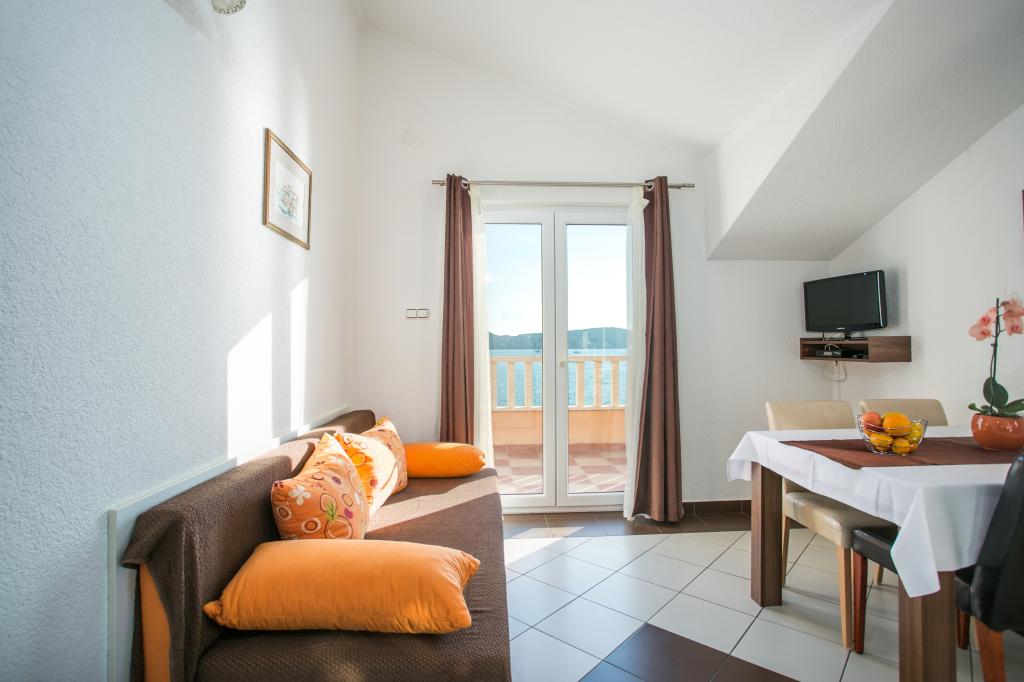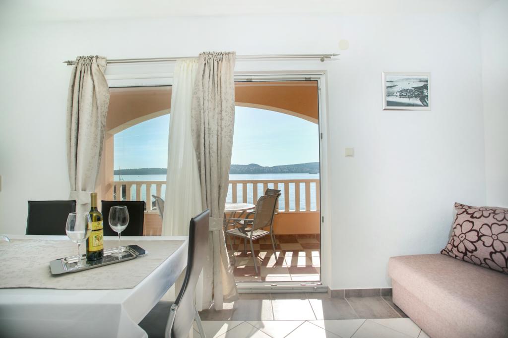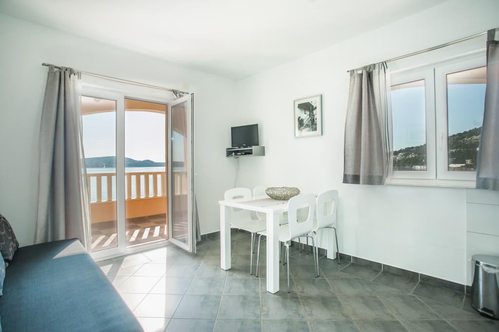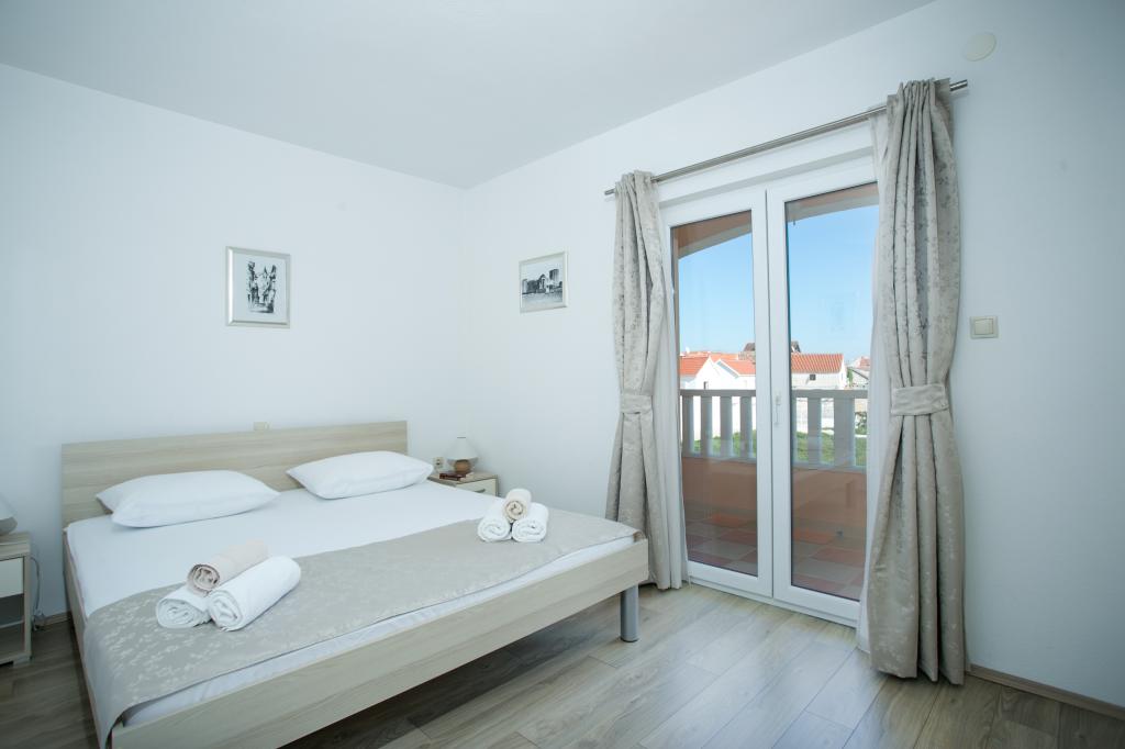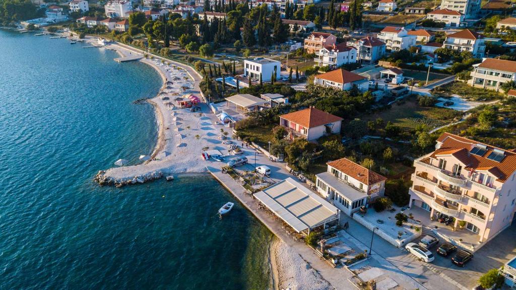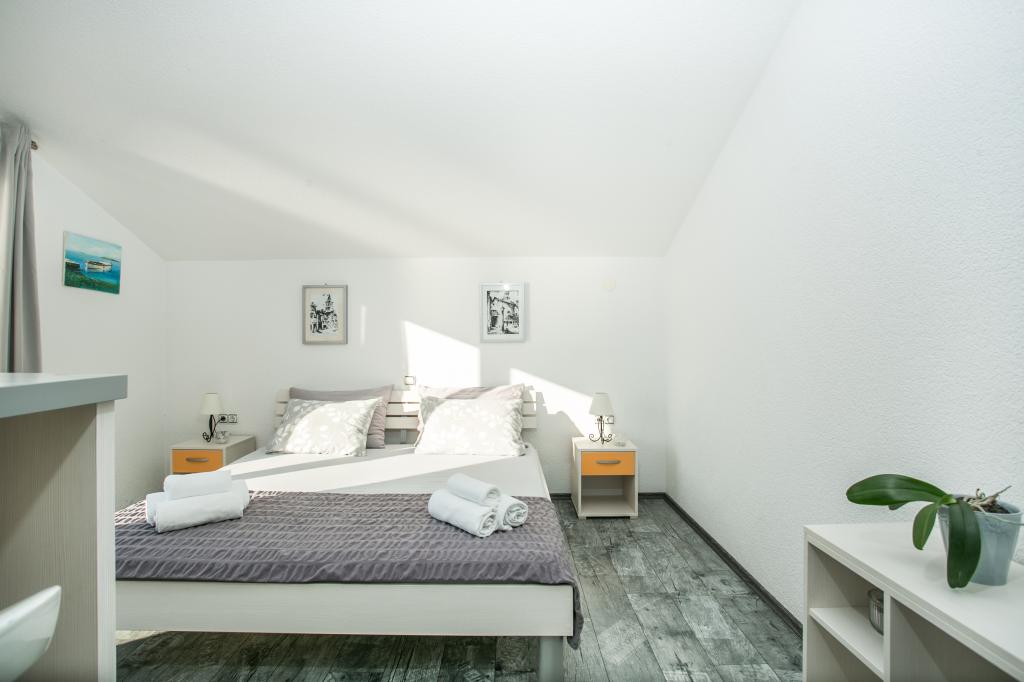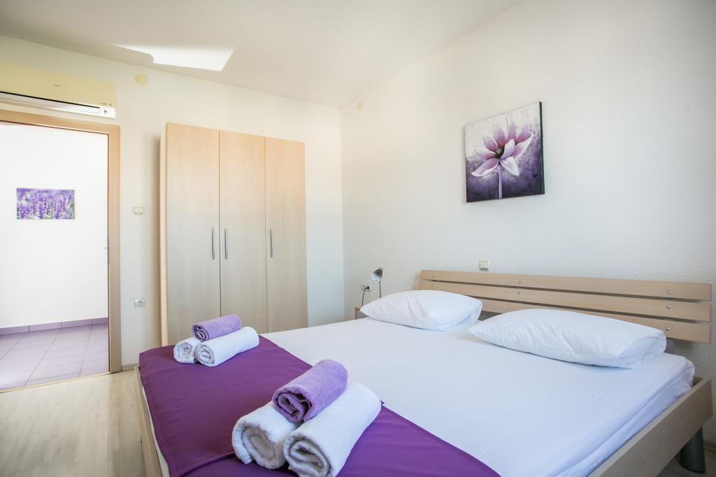 Hvis du leder efter et fredeligt og roligt sted, hvor du vil nyde, glemme alle dine bekymringer, slappe helt af, nyde lyden af bølgerne og den smukke udsigt, så er Villa Matija det bedste valg til din perfekte ferie. Adgangen til huset er arrangeret, der er parkeringspladser, lejlighederne har separate indgange, alle har aircondition, hver lejlighed har gratis trådløst internet, LCD- eller smart-tv og satellitkanaler, altanerne er sydvendte og har udsigt over havet og stranden. Huset ligger kun 20 meter fra havet og 40 meter fra stranden. Restauranter og butikker ligger kun få minutters gang væk. Ved siden af huset ligger en 3 kilometer lang promenade langs havet.