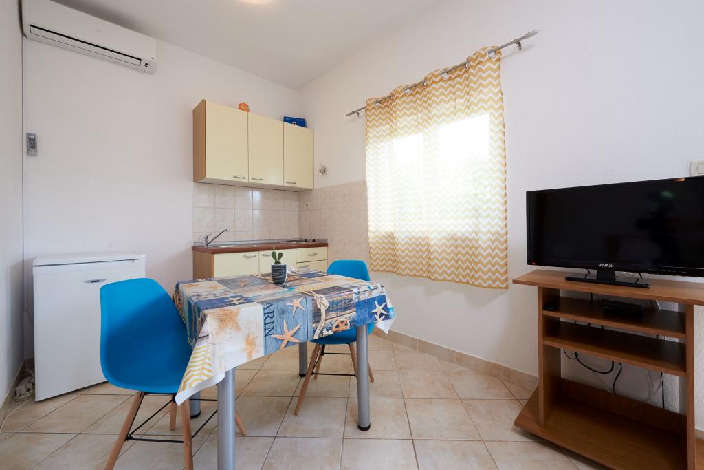 Fuldt møblerede lejligheder i centrum af en lille dalmatisk landsby, Seget Vranjice, kun 30 m fra stranden og kun 5 km fra Trogir (UNESCO-beskyttet by) er et ideelt valg for familier med børn. Studiolejligheder ligger i stueetagen, A8 og A4 (a) er på første sal, mens A4 (b) er på anden sal. Bare 5 minutters gang derfra er der butikker og flere restauranter, hvor du kan nyde de bedste dalmatiske specialiteter. Sportsfaciliteter til forskellige aktiviteter er også i nærheden, kun 10 minutters gang væk. Hvis du vil besøge Trogir, Split eller en af de nærliggende øer, er bådstoppet kun få minutter væk. Foran huset er en have, hvor børnene kan lege sikkert. I gården bag huset er en grill til din rådighed. Der tilbydes også parkering for alle lejlighedens gæster.