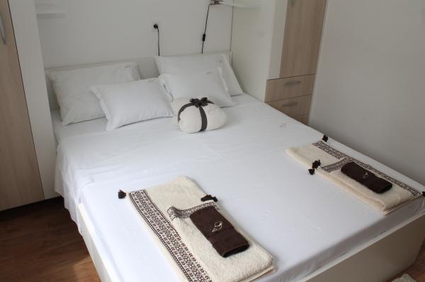 Moderne udstyret lejlighed i to etager (fritliggende hus i træk) med egen terrasse i den gamle bydel meget roligt og kun 50 m fra centrum nær supermarkeder, posthus, vekselkontorer, caféer og restauranter. afstand fra stranden 100 m. På øverste etage er der et soveværelse med en dobbeltseng 160x200 og et badeværelse, og på underetagen er der en stue med køkken og en hjørnesofa, der bruges som en ekstra seng 160x200 . Lejligheden er fuldt udstyret med alt til en behagelig ferie. Foran indgangen er der en terrasse på 10 m2, som kan bruges som sommer-spisestue eller som et sted at slappe af. Rygning er ikke tilladt i huset Kæledyr er ikke tilladt. For gæster er der parkering til et køretøj 5 minutters gang fra lejligheden. Når gæsterne forlader, desinficeres lejligheden i detaljer, og alle foranstaltninger træffes for at beskytte gæsterne mod infektioner. I tilfælde af behov er der lægehjælp i nærheden, tilgængelig 24 timer.