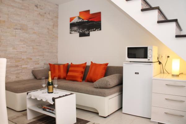 Vi opholdt sig i lejligheden i juli. Tal perfekt med fru Ines. Vi skrev SMS, beskrev os vejen og hilste os pænt velkommen. Lejlighed nøjagtigt som beskrevet, selvom den er lille, men smuk og ren !! Ovenpå soveværelse, hvor to voksne sover og nedenunder i stuen med køkken sovesofa, hvor to personer sover komfortabelt. Lejligheden ligger i en stille gade, men kun få meter fra centrum og havnen. Den smukke sandstrand, der er velegnet til små børn, er lidt længere end nævnt, ca. 10 minutter med langsom gåtur. (Desværre i sæsonen head to head, og derfor låner vi snarere liggestole for at have vores plads. 2 liggestole og paraply omkring 350 CZK) Langs kysten er der mange restauranter og smukke vandreture om aftenen.