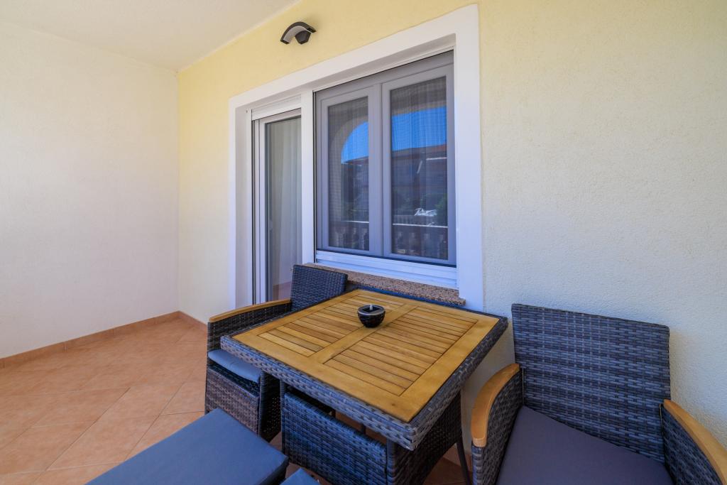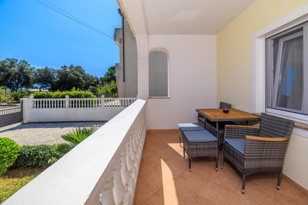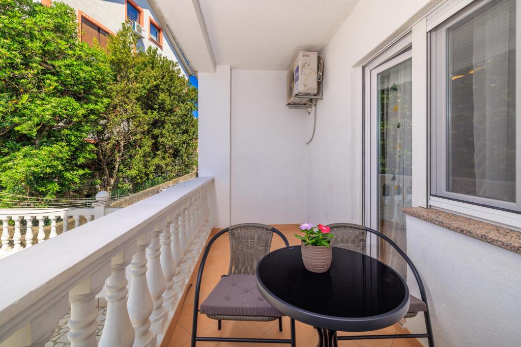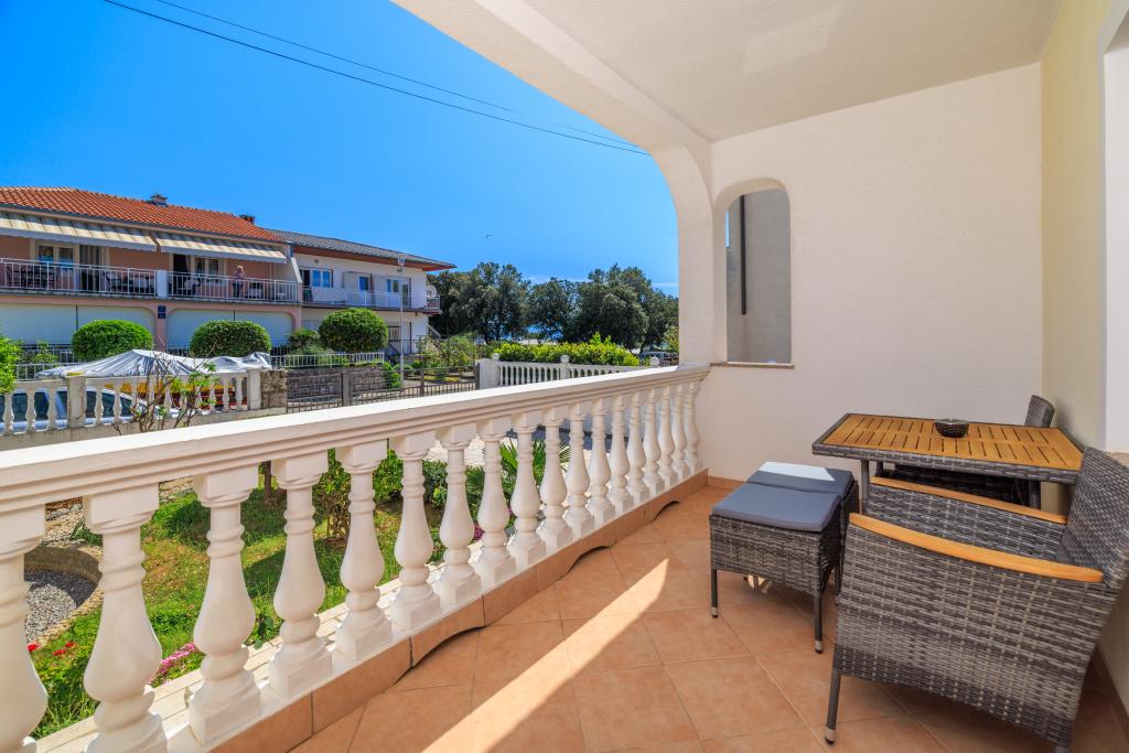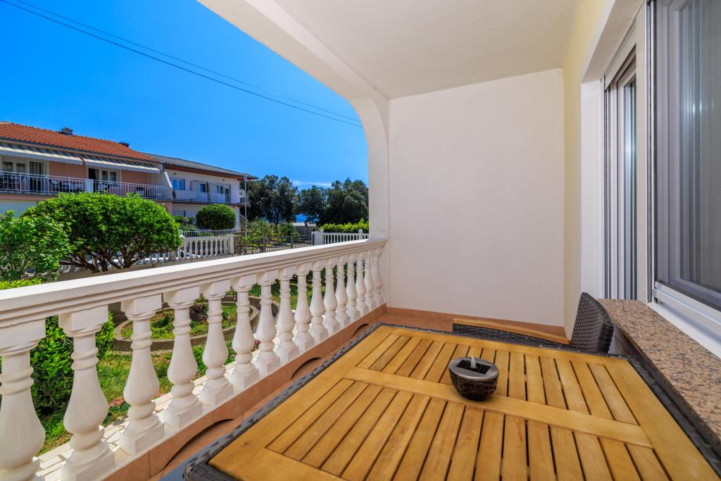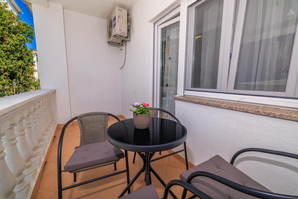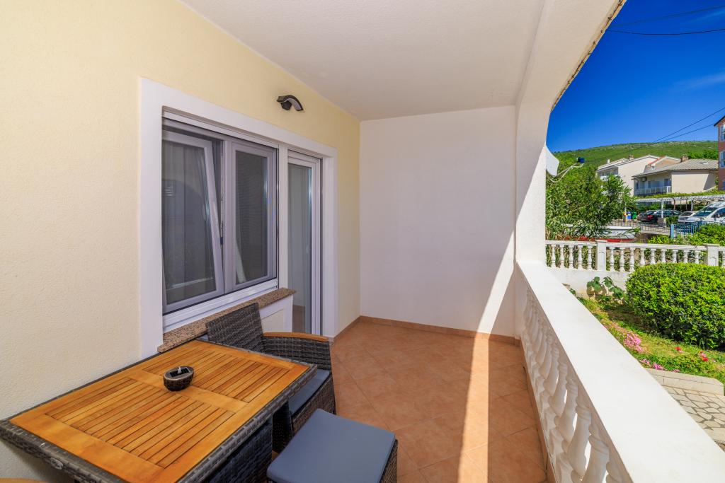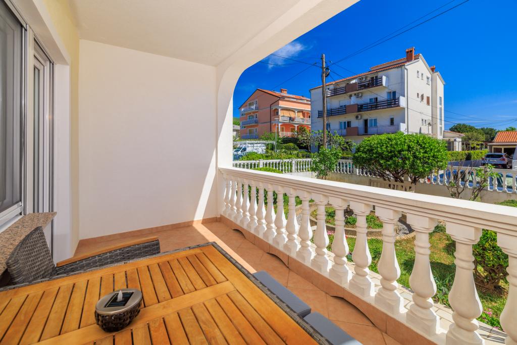 Lejligheden ligger i et familiehus lige ved siden af autocampen, få minutter fra havet og den berømte Rokan strand. På promenaden, der strækker sig gennem hele byen, er der en række restauranter, caféer, sportsfaciliteter og butikker. Lejligheden består af to store dobbeltværelser, hver med mulighed for en ekstra seng/udklappelig/, køkken med spisestue hvor der er hjørnesofa og tv samt rummeligt badeværelse med badekar og bruser. Der er en vaskemaskine på badeværelset. Hvert værelse og køkken åbner ud til en overdækket terrasse.