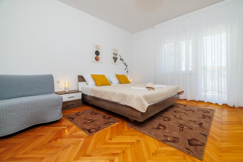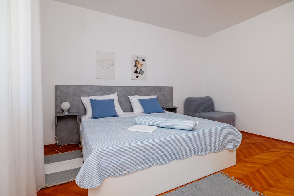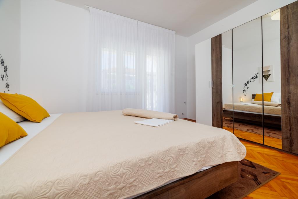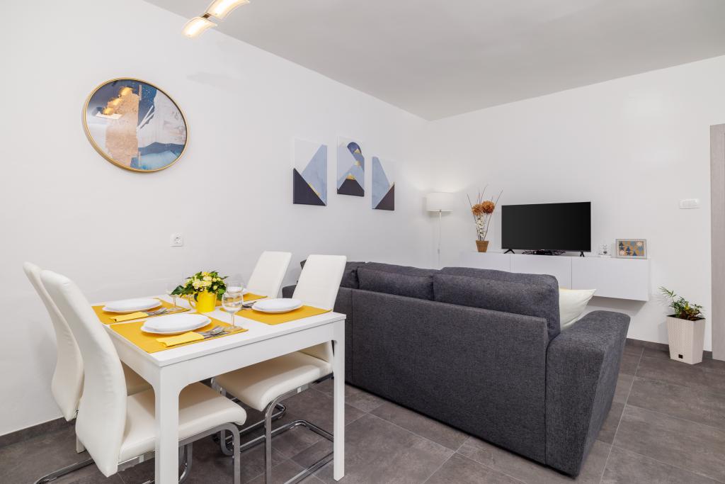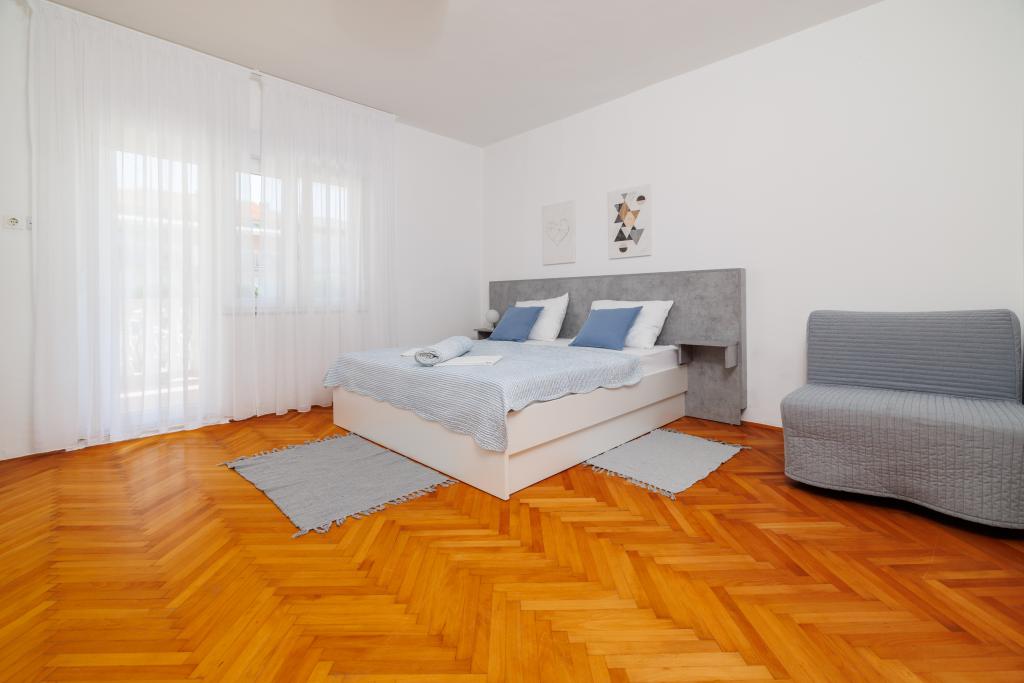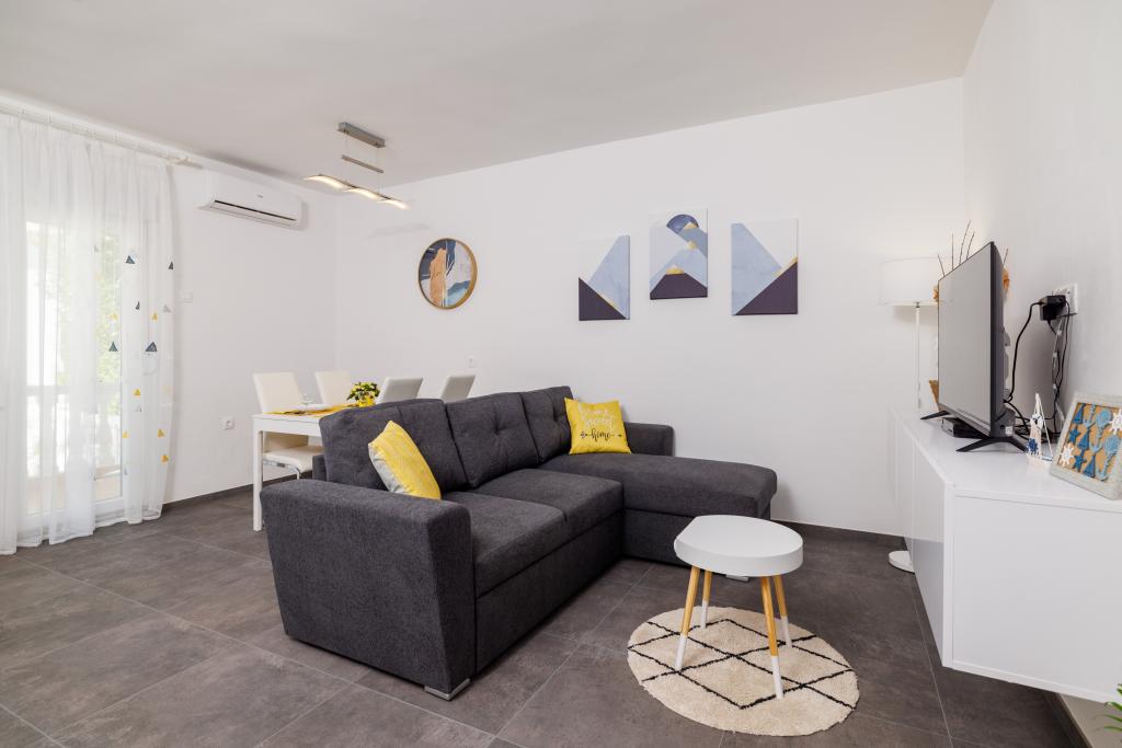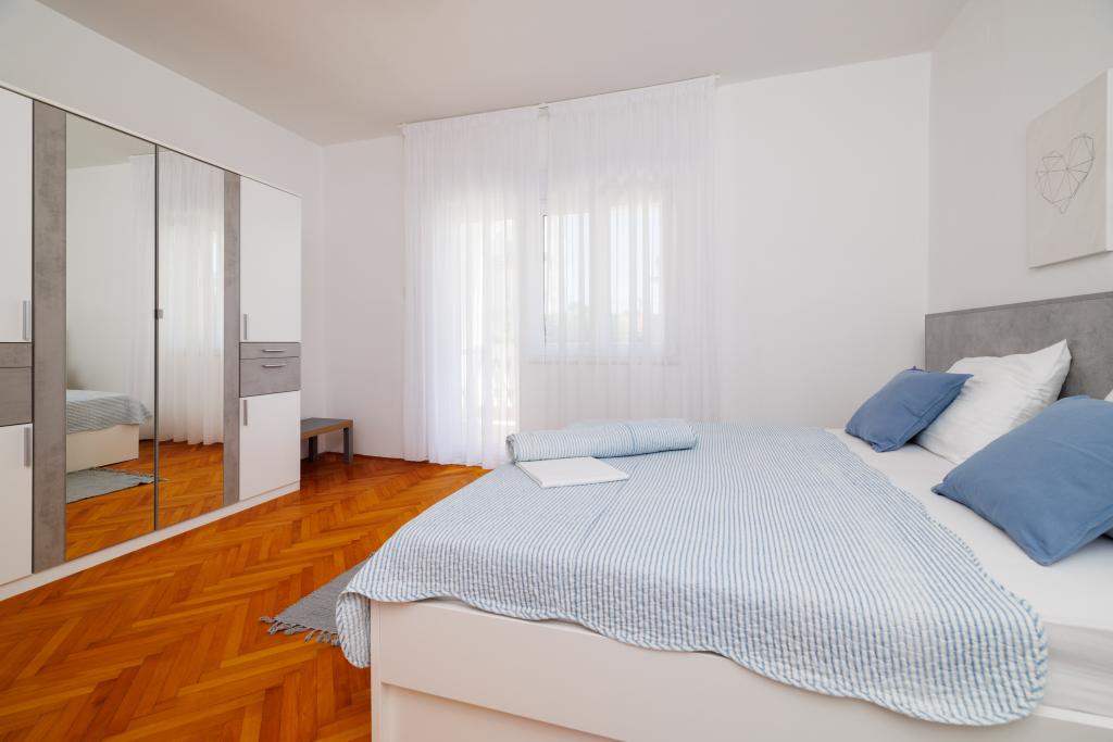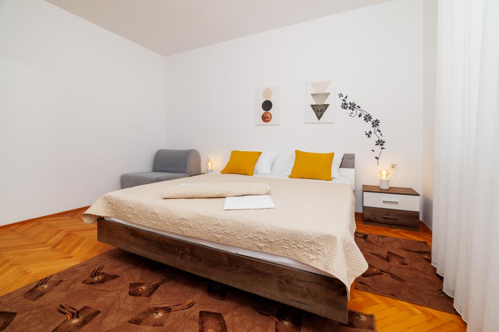 Lejligheden ligger i et familiehus lige ved siden af autocampen, få minutter fra havet og den berømte Rokan strand. På promenaden, der strækker sig gennem hele byen, er der en række restauranter, caféer, sportsfaciliteter og butikker. Lejligheden består af to store dobbeltværelser, hver med mulighed for en ekstra seng/udklappelig/, køkken med spisestue hvor der er hjørnesofa og tv samt rummeligt badeværelse med badekar og bruser. Der er en vaskemaskine på badeværelset. Hvert værelse og køkken åbner ud til en overdækket terrasse.