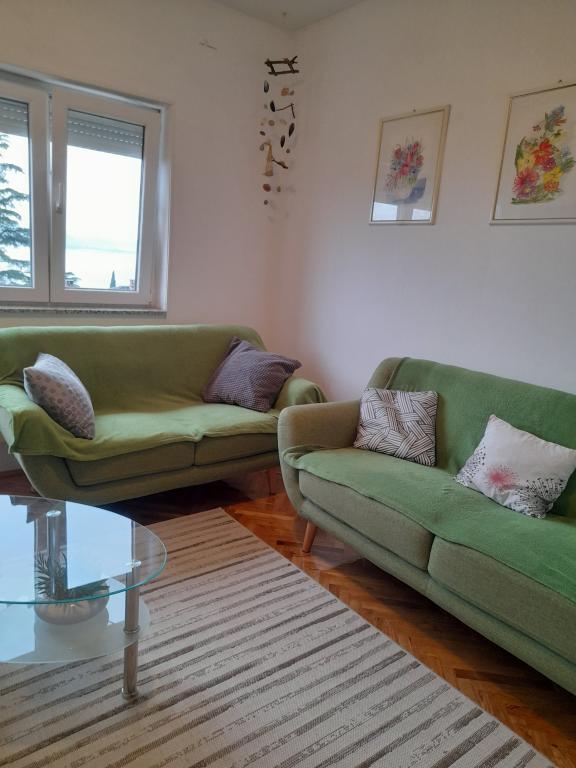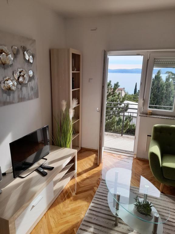 Lejlighed Maja ligger på anden sal i et familiehus i en rolig del af Selce. Ved siden af indgangen til lejligheden er en stor overdækket terrasse med havudsigt. Lejligheden har desuden en rummelig altan med havudsigt, som kan tilgås fra stuen. Der er også to soveværelser, et med dobbeltseng og et mindre med to enkeltsenge, et badeværelse, køkken og separat toilet, aircondition og wi-fi. Gæsterne har adgang til én parkeringsplads i den indhegnede gård foran huset.
