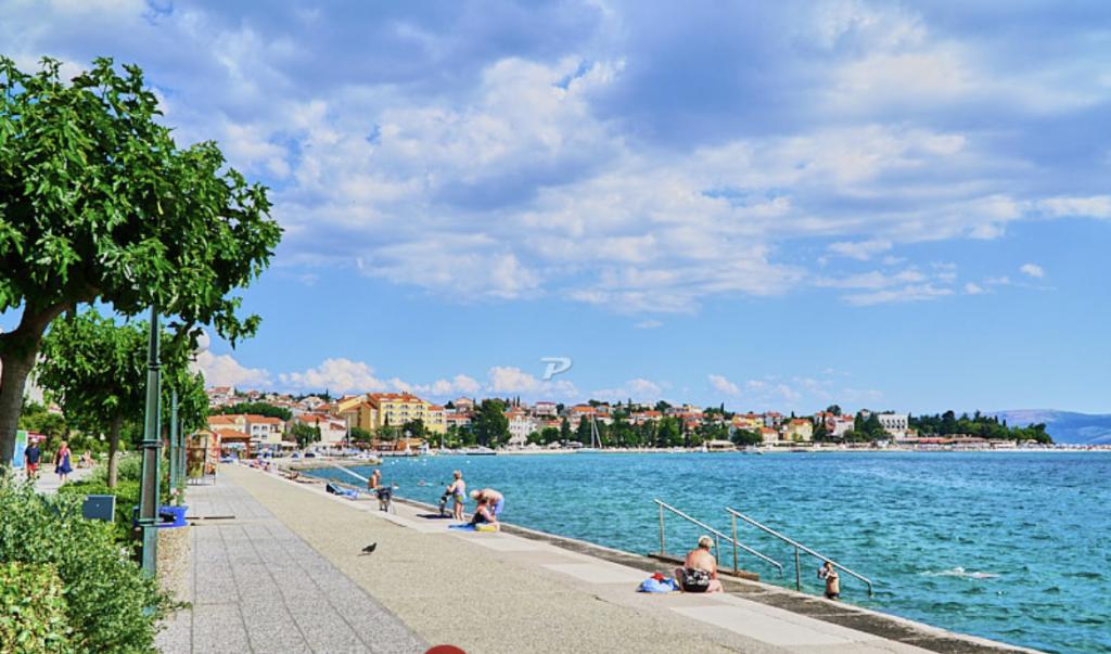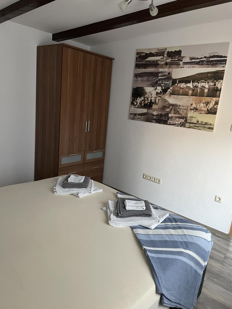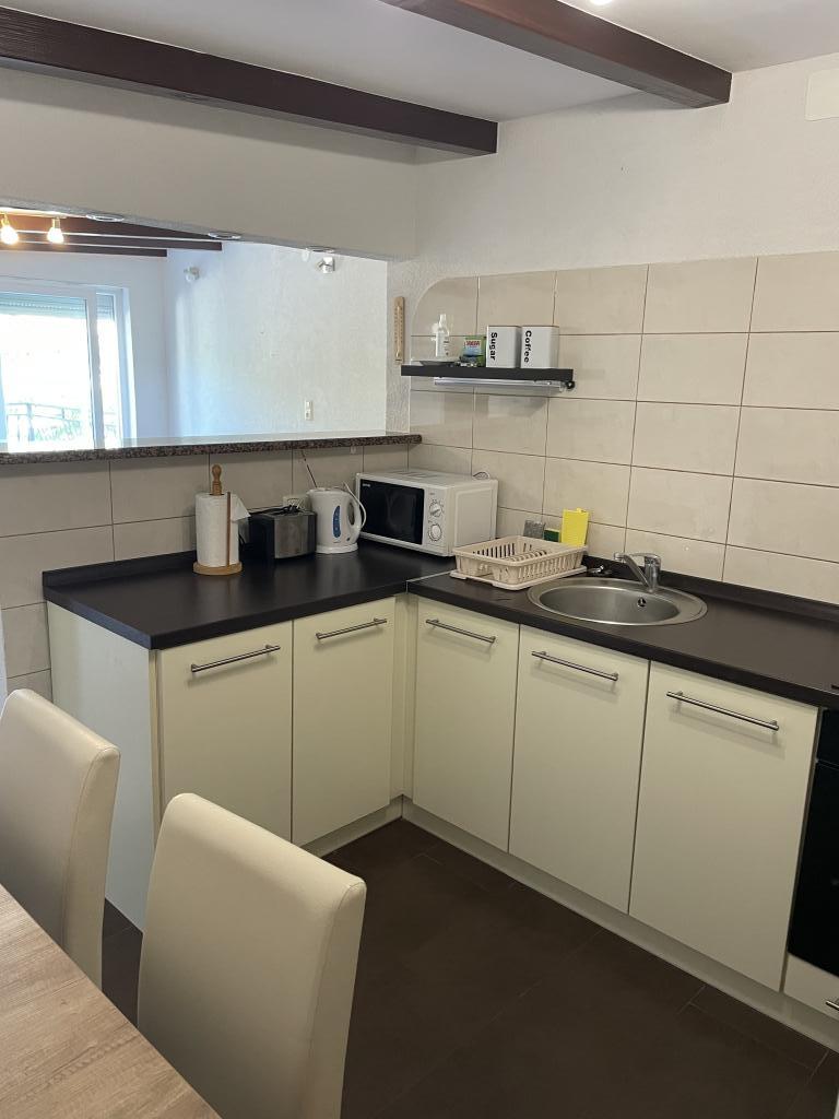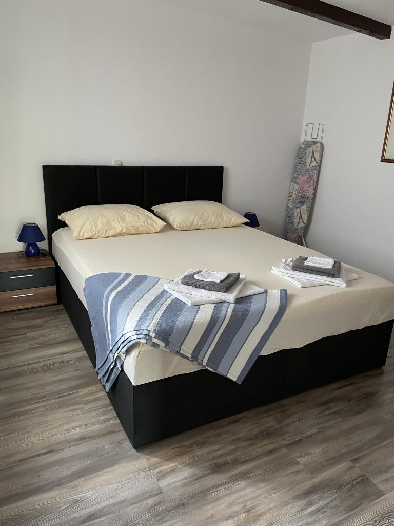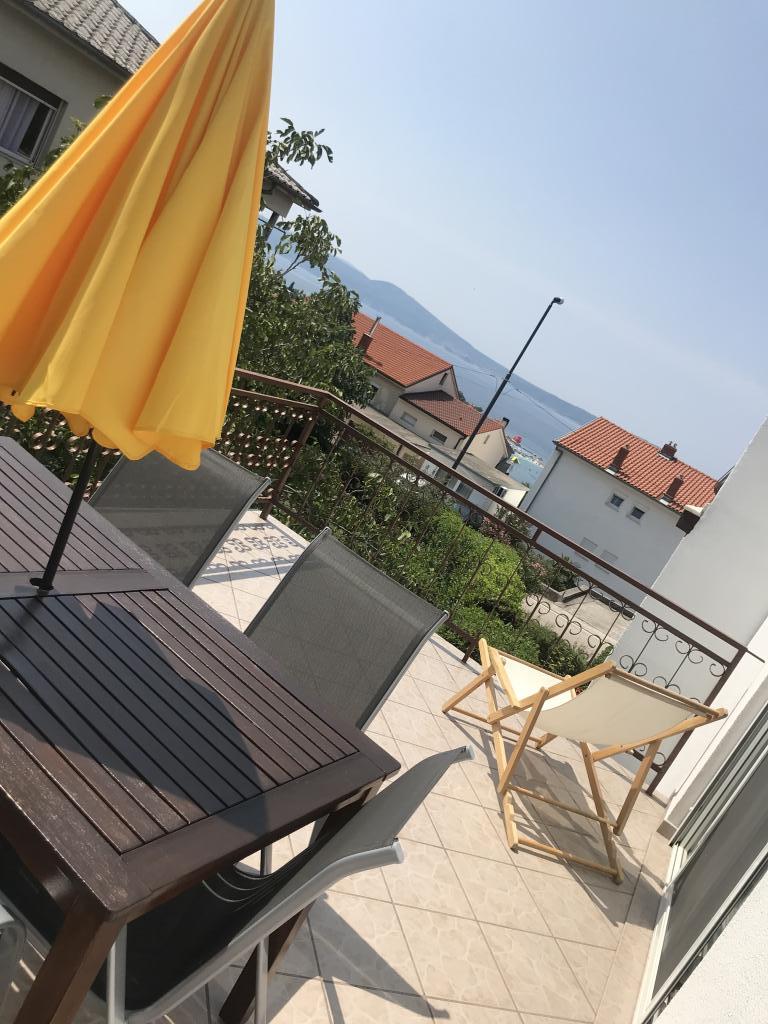 Lejligheden ligger på 1. sal i et familiehus med stor separat terrasse og udsigt over havet. Det ligger ca 350 m fra havet og stranden og byens centrum. Den består af to soveværelser med dobbeltsenge, stue, veludstyret køkken med spisestue, badeværelse (vaskemaskine). Fuldt udstyret, wi-fi, aircondition, parkering i gården af huset.