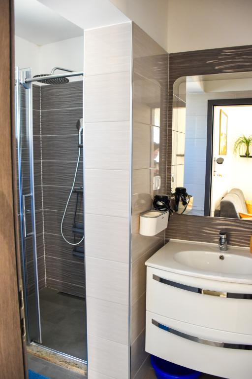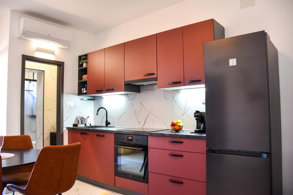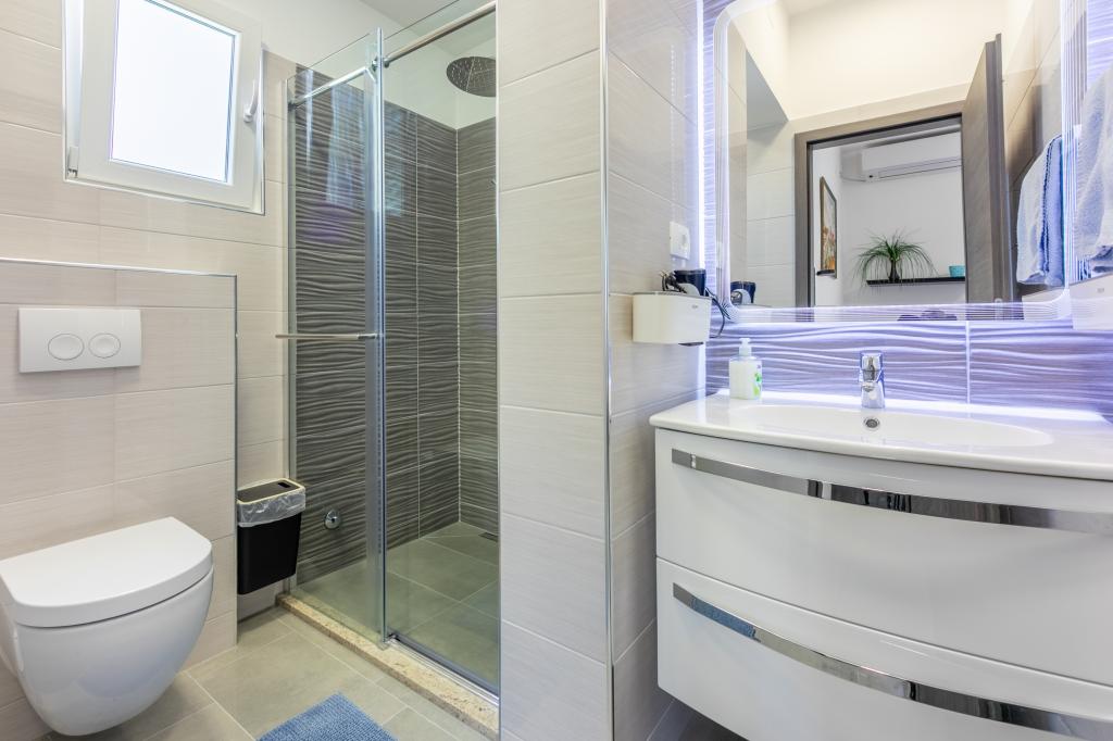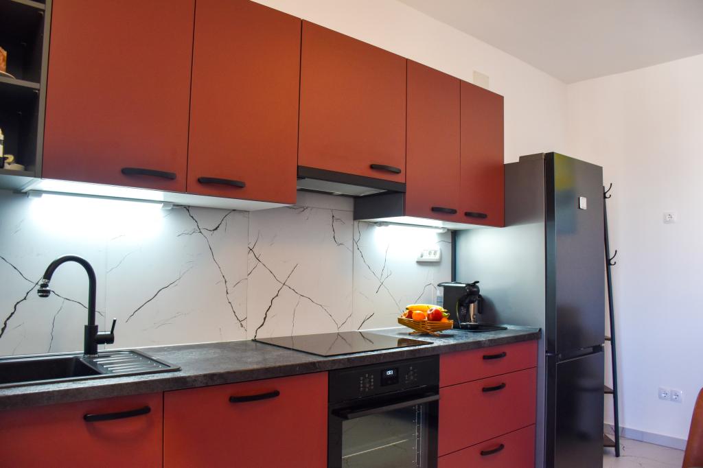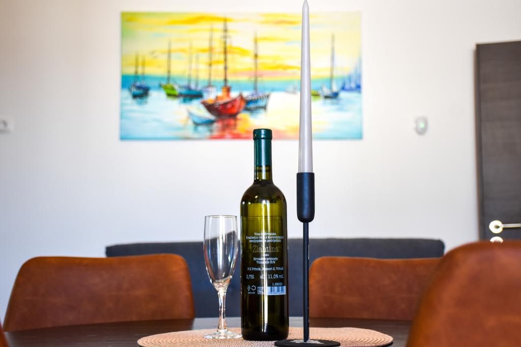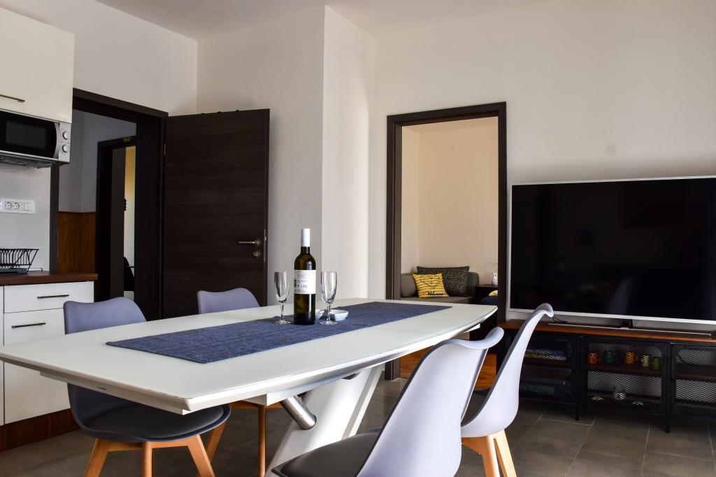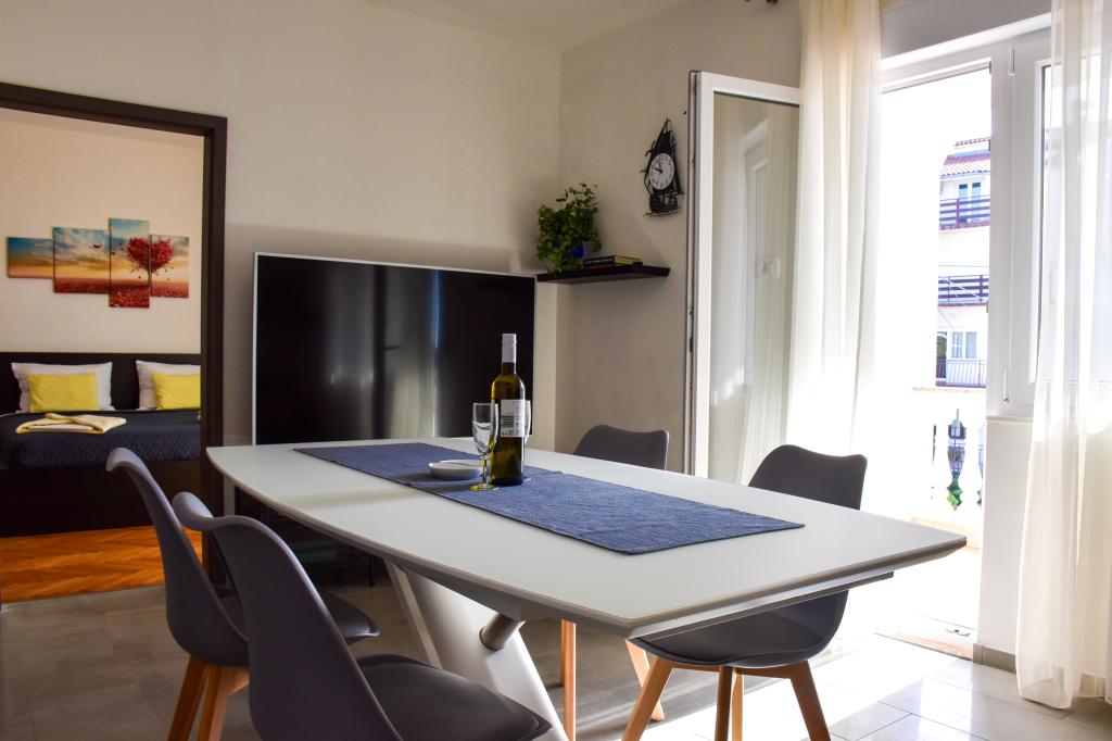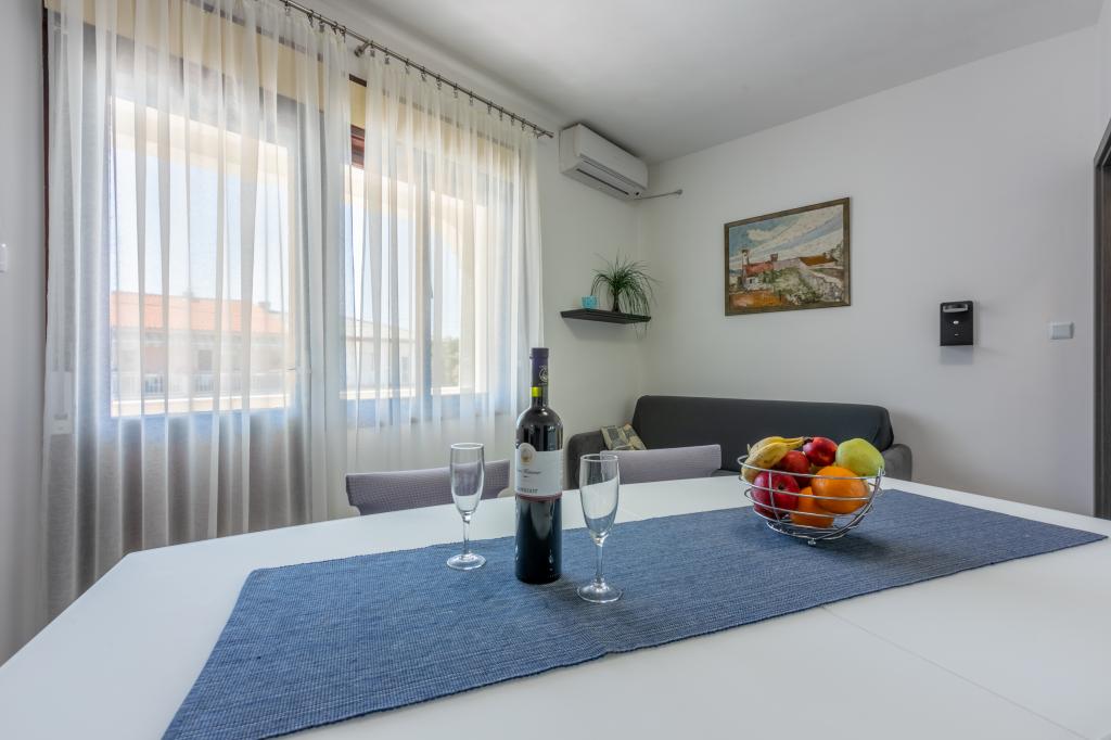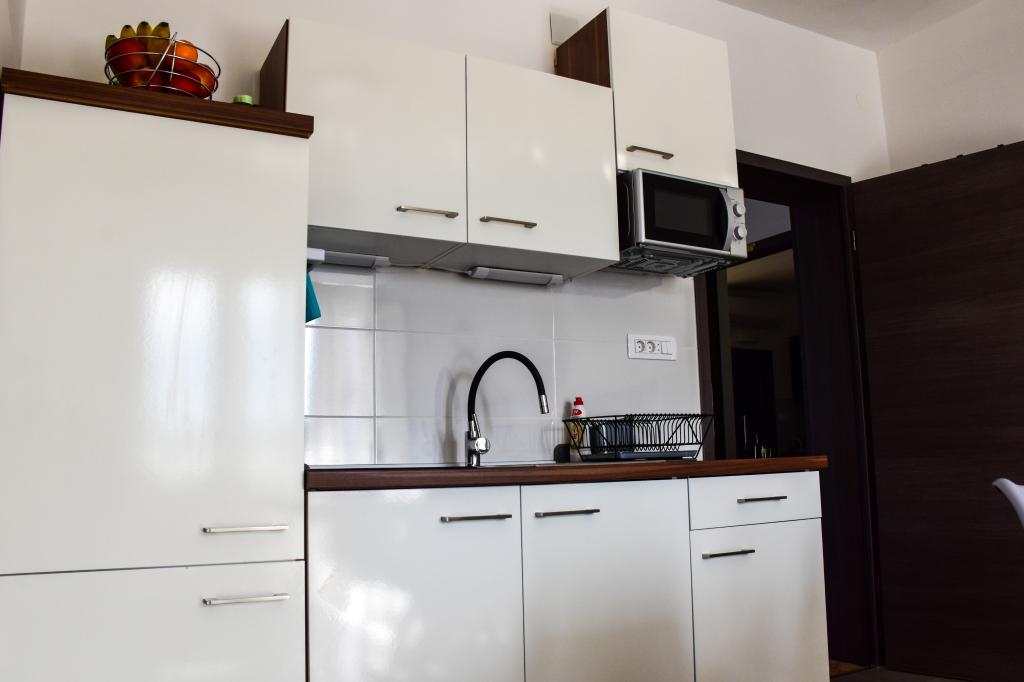 Lejlighederne ligger i et familiehus, få minutters gang fra havet og promenaden med en række restauranter, caféer, sportsfaciliteter og butikker. Lejligheden "Ema" (2+2) består af et dobbeltværelse, et køkken med spisestue hvor der er en dobbelt sovesofa, der kan foldes ud til en dobbeltseng, et badeværelse og en rummelig terrasse med grill. Den anden lejlighed "Gita" (2+1) har et soveværelse med dobbeltseng, et rummeligt køkken med en spisestue med en sovesofa, et badeværelse og en rummelig terrasse.