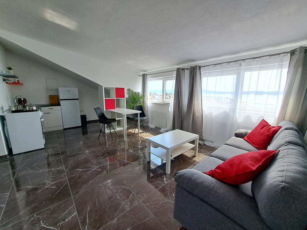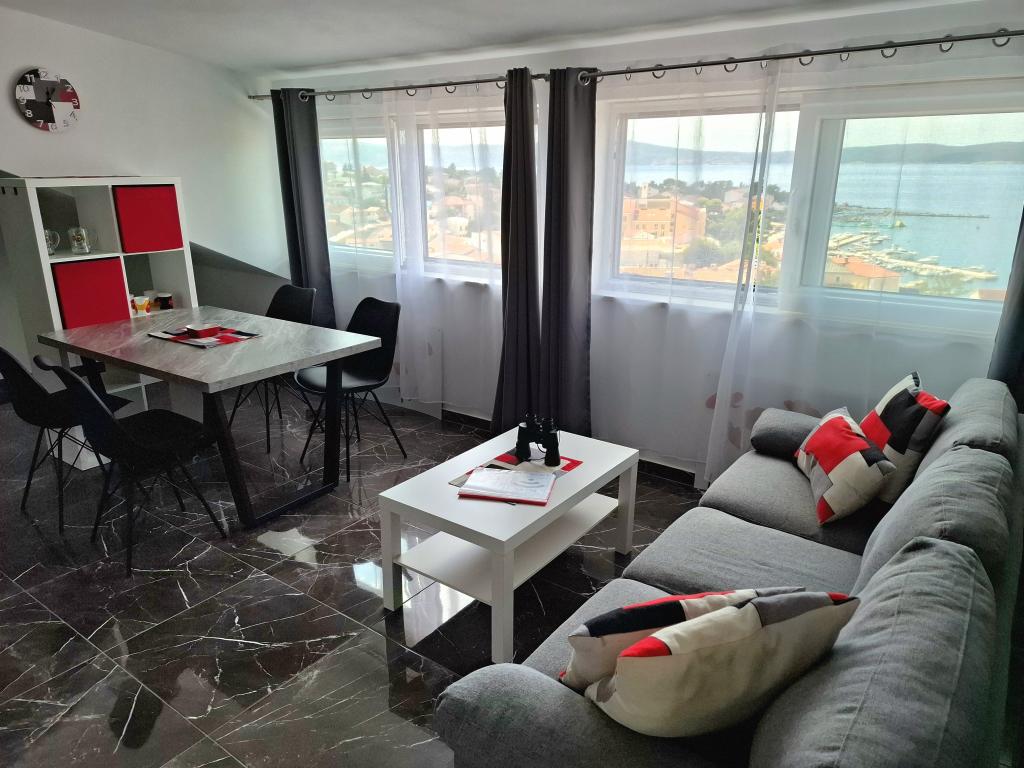 Den nyrenoverede lejlighed med en smuk udsigt over havet er beliggende i centrum af Selc, en malerisk by nær Crikvenica. Byens centrum, pladsen, caféer, restauranter og strande ligger kun få minutters gang væk. Lejligheden ligger omkring hundrede meter fra byens centrum og stranden. Lejlighedens pris inkluderer parkering i gården, aircondition og Wi-Fi.