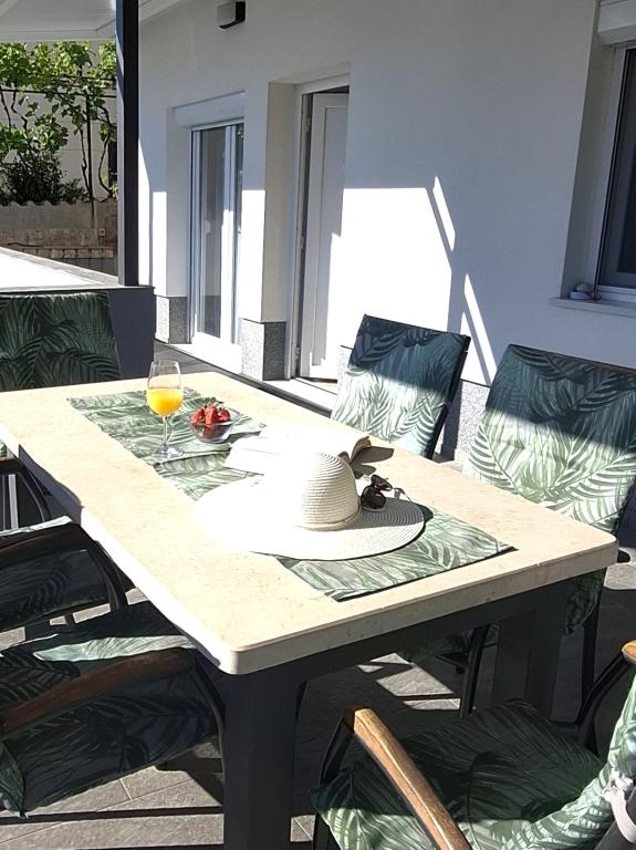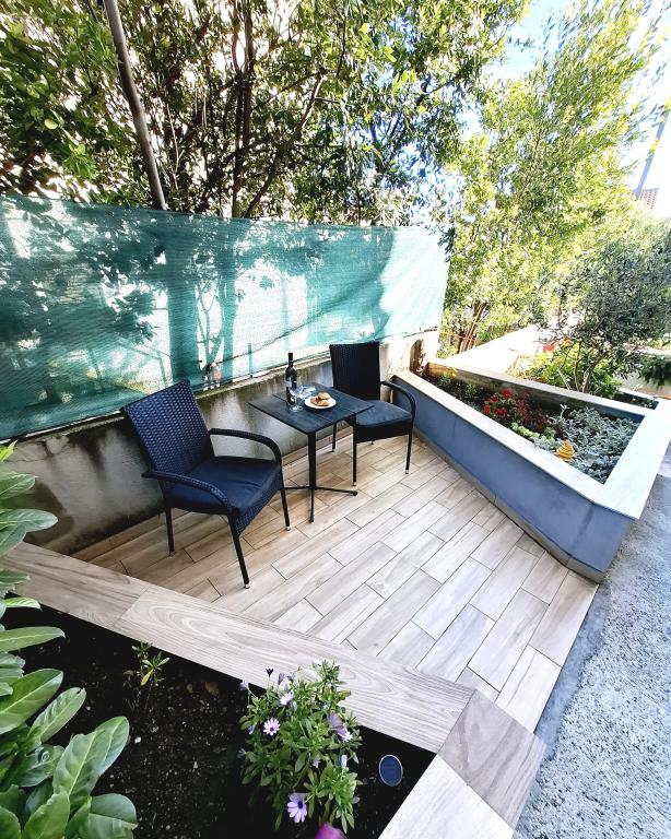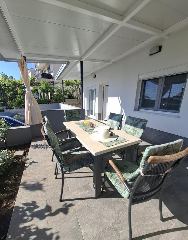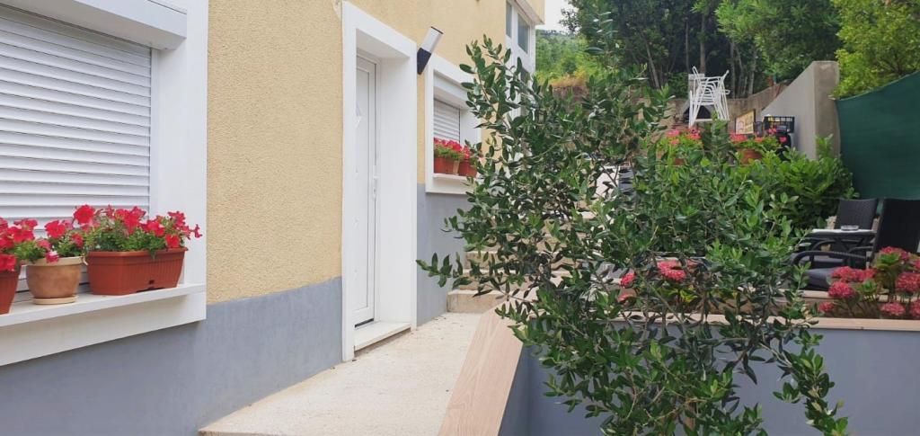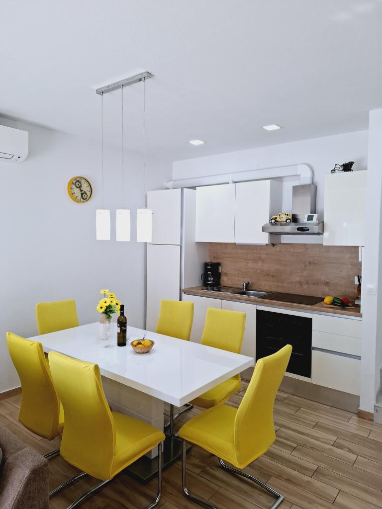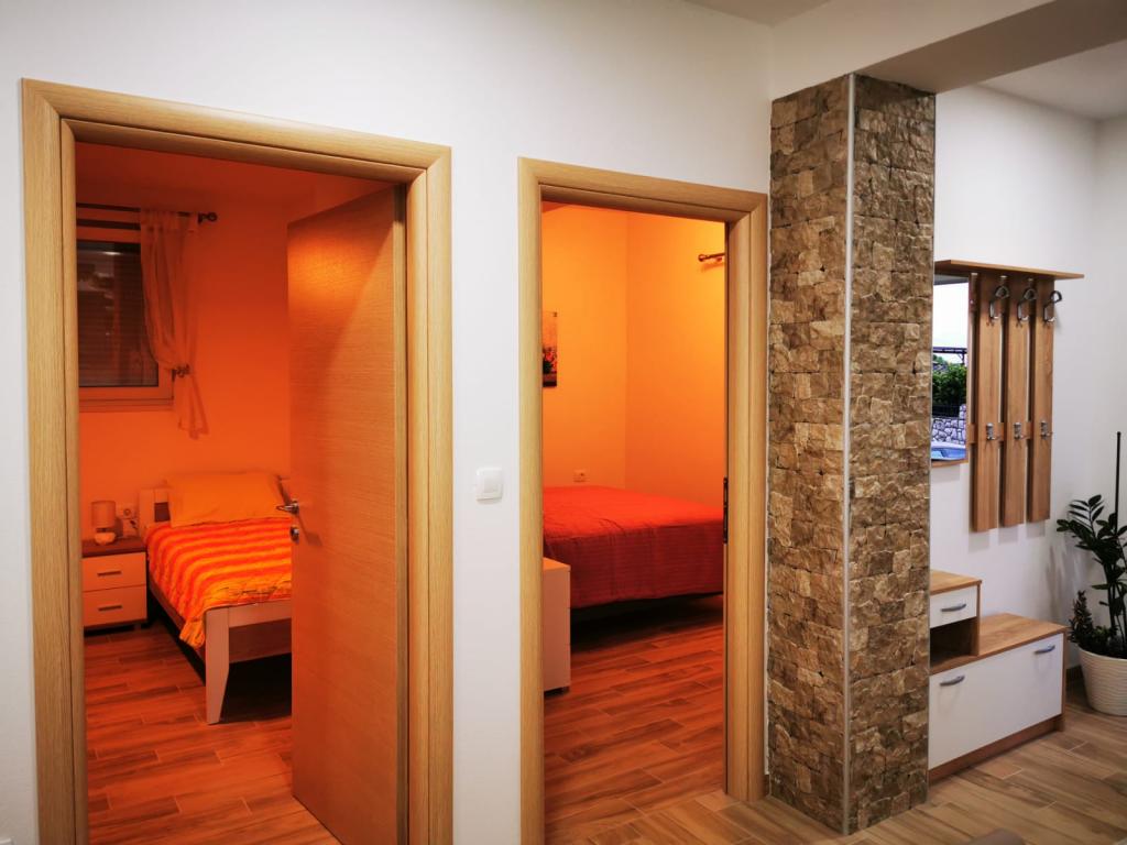 Lejlighed 1 ligger i stueetagen i et familiehus med en stor privat terrasse og delvis havudsigt. Fuldt udstyret, aircondition, internet, parkering. Den ligger cirka 300 m fra havet og stranden samt bymidten. Den består af to dobbeltværelser (et med en dobbeltseng, et med to enkeltsenge), en stue, et udstyret køkken med spisestue (opvaskemaskine), et badeværelse (vaskemaskine) og et separat toilet. Parkering til 1 køretøj er tilgængelig i husets gårdhave. Studiolejligheden ligger i stueetagen (høj stueetage) i familiehuset. Den har et køkken, en dobbeltseng 160x200 cm, et badeværelse, aircondition og en lille terrasse foran studiet. Fælles brug af grillen. Lejlighed Lea ligger på 2. sal. Den har 2 soveværelser, et udstyret køkken, et badeværelse (vaskemaskine), aircondition, en stor terrasse med havudsigt. Parkering til 1 bil er tilgængelig i husets gårdhave.