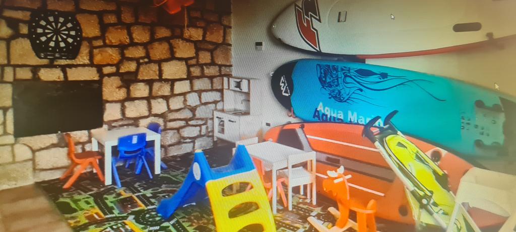 Vi tilbyder vores gæster yderligere faciliteter såsom liggestole og parasoller (inkluderet i prisen), som de kan tage med til stranden foran huset, cykler til voksne og børn, surfbrætter, kajakker, et legerum for børn, aircondition og meget mere.