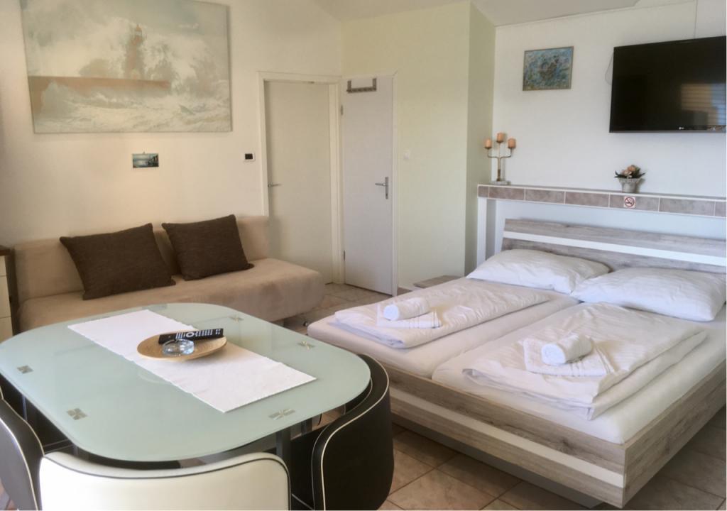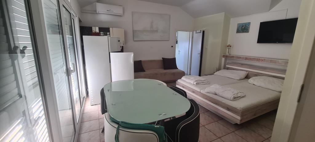 Lejligheden er pæn, ren, smagfuldt møbleret og veludstyret. Der er liggestole, parasoller, brætter, cykler og et legerum til rådighed... Udover beliggenheden (første række til havet) er vi begejstrede for den meget venlige værtinde Branka, som altid står til gæsternes tjeneste. Den diskrete, muntre, velmenende og varme fru Branka kan være et eksempel for alle lejere på, hvordan en god vært bør være. Vi anbefaler det til alle, unge som gamle, såvel som familier med børn. Morgenmaden, der er inkluderet i prisen, er varieret og passer til enhver smag.