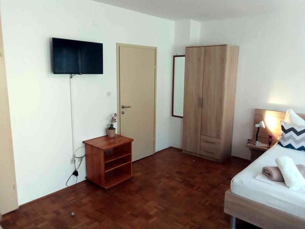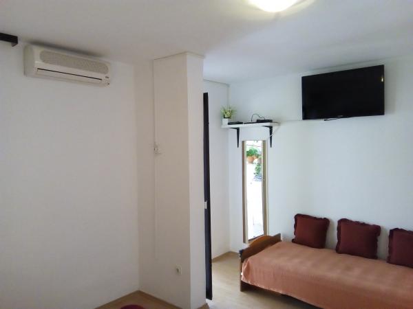 Læs mere IndkvarteringsenhederEn forudbetaling på €200 er sædvanlig, og resten betales ved ankomst. Reglen er, at gæsterne forlader lejlighederne kl. 10, og nye gæster kommer ind kl. 14 (hvis lejligheden er klar, kan det være tidligere). Brug af aircondition opkræves yderligere, for mindre lejligheder €5/dag, og for større lejligheder €7/dag. I lejligheder, hvor kæledyr er tilladt, opkræves et ekstra gebyr på €5/dag.