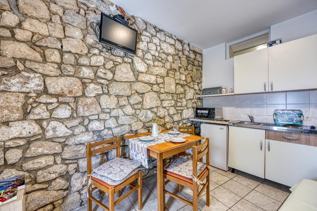 Vi var i juni 2018 i fire personer. Vi besatte en lejlighed i stueetagen af bygningen, der går fra gaden. Fra havet er første sal. Renoveret bygning, rent ved havet. Tæt på alt. På første sal er en større lejlighed. Lejligheden har et soveværelse med en dobbeltseng. En sovesofa i køkkenet. I Kroatien sidder du ikke hjemme. Det var fantastisk for os. Hvis der var spørgsmål, så på meil Z. Brylski