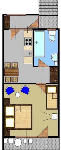 Lejlighederne ligger i en familie hus på første sal. Hver lejlighed har en separat indgang, balkon og parkering i forhaven. I gården bag huset er til rådighed for swing og skub til børn. Lejlighederne består af et soveværelse med tre senge (barneseng eller ekstra seng), fuldt udstyret køkken med spiseplads, badeværelse med toilet. Lejlighederne er udstyret med aircondition og satellit-tv, og der er gratis brug af internettet.