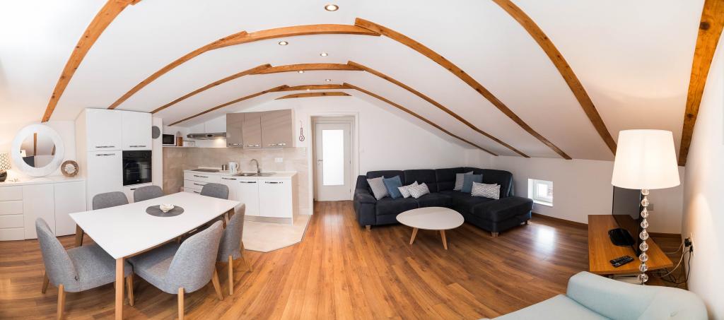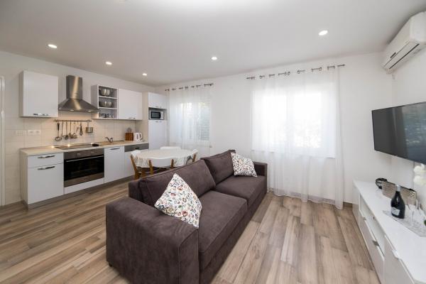 Vi havde en vidunderlig ferie her i juli 2023. Ejerne er meget søde og imødekommende. Ejeren viste os vores lejlighed og forklarede alt. Ejeren tillod os at parkere vores bil foran lejligheden allerede om morgenen. Fremragende kommunikation med ejerne. Hele huset er smukt, velholdt, velholdt, gården fuld af blomster, overalt meget ren. Vi havde fuldstændigt privatliv, fred. Lejligheden er helt ny, moderne og smukt møbleret, meget ren og rummelig nok. To klimaanlæg, vaskemaskine og opvaskemaskine var fremragende. Vi brugte også et strygejern og en førstehjælpskasse. Køkkenet er veludstyret, intet manglede. Fem mennesker havde det godt der. Vi brugte balkonen med udsigt over Selce, terrassen er fantastisk til at tørre våde ting fra stranden. Lejligheden har endda et ekstra værelse til gummibåde, svømmeudstyr, løbehjul. Lejligheden er fantastisk. Vi sætter pris på den vidunderlige nærhed til centrum, til butikken, til frugt- og grøntmarkedet, alt sammen inden for 2 minutter til fods. Poli Mora strand inden for 5 minutter til fods. Rengøringsdamen er meget venlig mod os og børnene, varmhjertet. Vi har allerede en reservation til sommeren 2024. Vi ser frem til og anbefaler denne vidunderlige bolig.