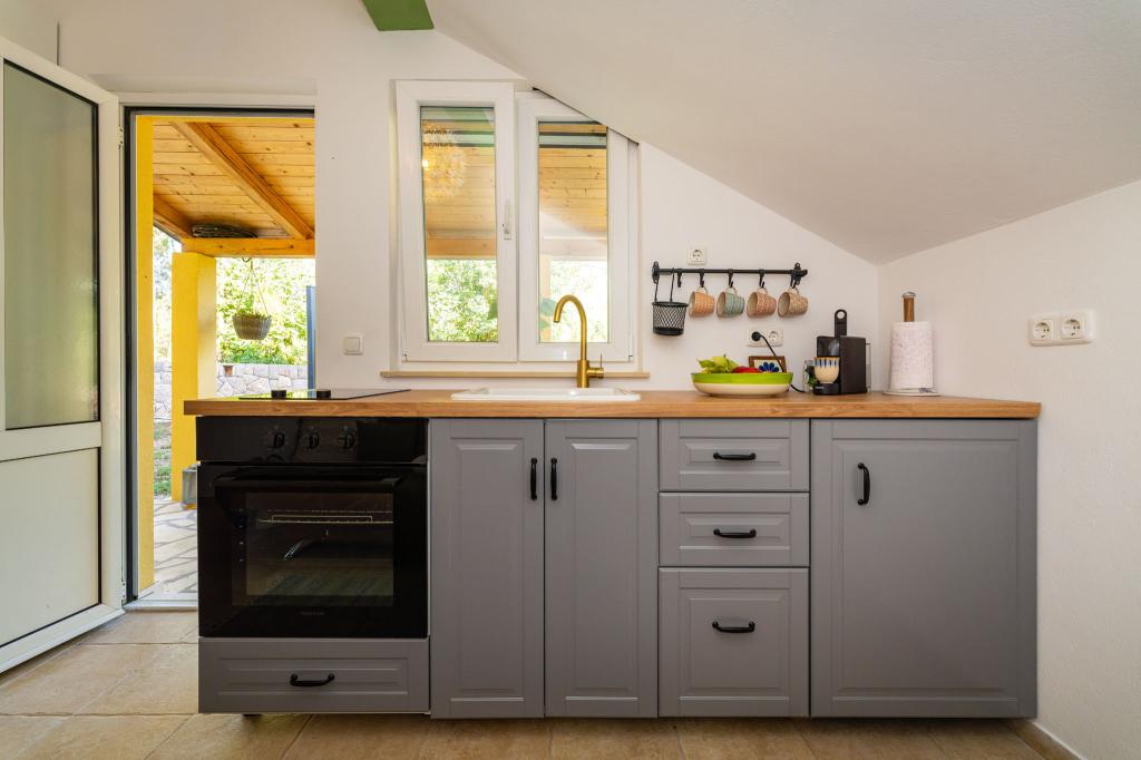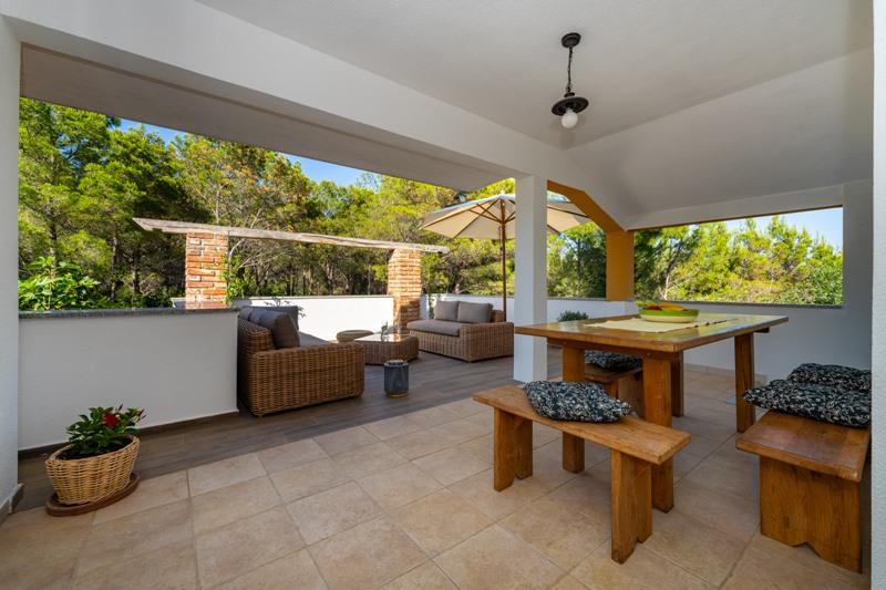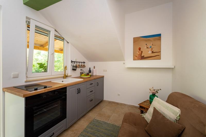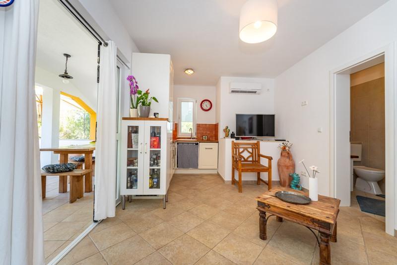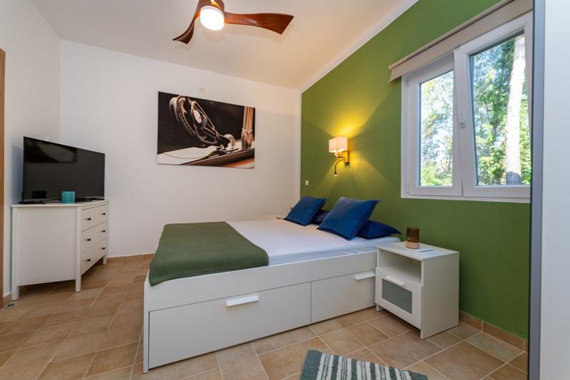 Anlægget er beliggende i en rolig beliggenhed ved siden af en fyrreskov og ikke langt fra centrum af Selin (250 m). Et ideelt valg til en rolig familieferie eller en ferie for par væk fra hverdagens larm og menneskemængder. Foran huset er der en smukt anlagt have, hvor gæsterne kan grille eller slappe af på liggestole i skyggen af fyrretræer. Der er 2 lejligheder i bygningen - 1 lejlighed til 4 personer (2 soveværelser) og 1 lejlighed til 2 personer. De er udstyret med alle nødvendige faciliteter for en behagelig og afslappet ferie. Hver lejlighed har SAT-TV, aircondition og Wi-Fi. En havebruser er også tilgængelig.