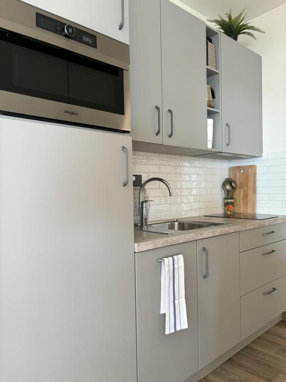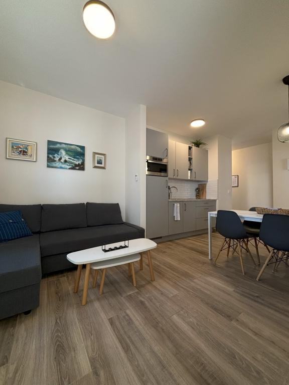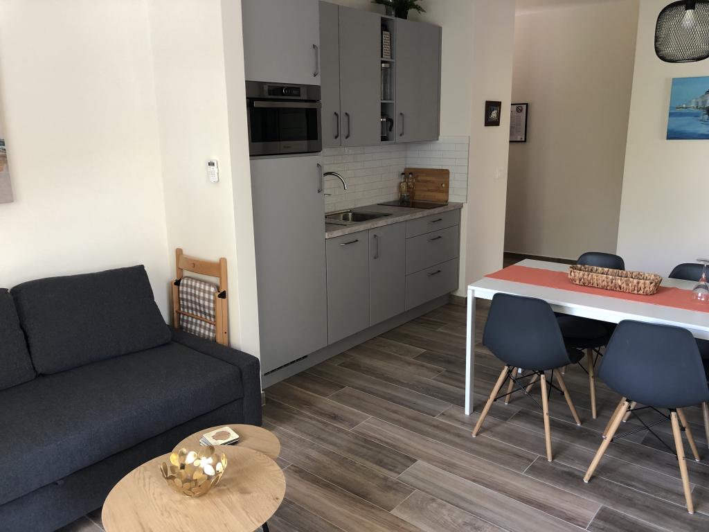 Placeringen var vidunderlig, udsigt over havet lige væk fra balkonen og kysten er virkelig 2 meter væk. Lejligheden var super ren, vi havde alt, hvad vi ønskede, alt er velholdt. Der var også en tremmeseng med sødt sengetøj og et håndklæde med eventyrfigurer til vores datter. Barnestol til toilettet var også tilgængelig. Køkkenet er fuldt udstyret, intet mangler. Værterne var fantastiske, hjælpsomme og meget venlige. De anbefalede steder at besøge, steder at spise og ting at gøre. P-plads straks modtaget i haven. WLAN også inkluderet. Legeplads i nærheden.
