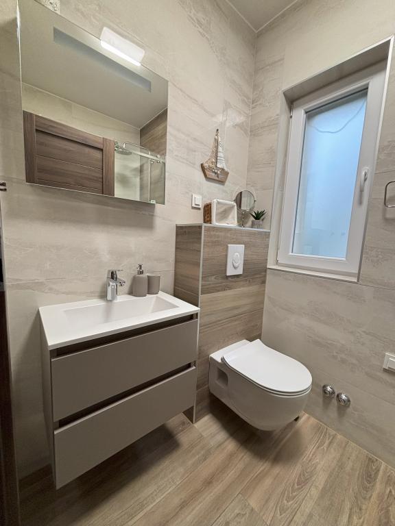 Smuk ny villa ved havet og stranden, lejlighed superb udstyret med moderne ting og møbler, parkering i gården, alt er indenfor 50 m, konditori, restauranter, cafeer, promenade, lille lystbådehavn, butikker, marked.... Lejlighedens terrasse er den bedste del, guddommelige øjeblikke ved havet, morgenkaffe i fred og ro, duften af fyrretræer og havet, perfekte solnedgange.....kom og oplev, ord kan ikke beskrive det. Og al den atmosfære ville ikke være mulig uden ejerne af villaen, Slaven og Mila, et vidunderligt ægtepar, perfekte værter. Gæstfrie frem for alt, altid klar til at hjælpe, til at komme frem, de står til rådighed for deres gæster, som de værdsætter umådeligt meget, og ved ankomsten føler man allerede, at man er velkommen. Mila, Slaven, tak for alt, det var en drømmeferie, vi ses næste år!