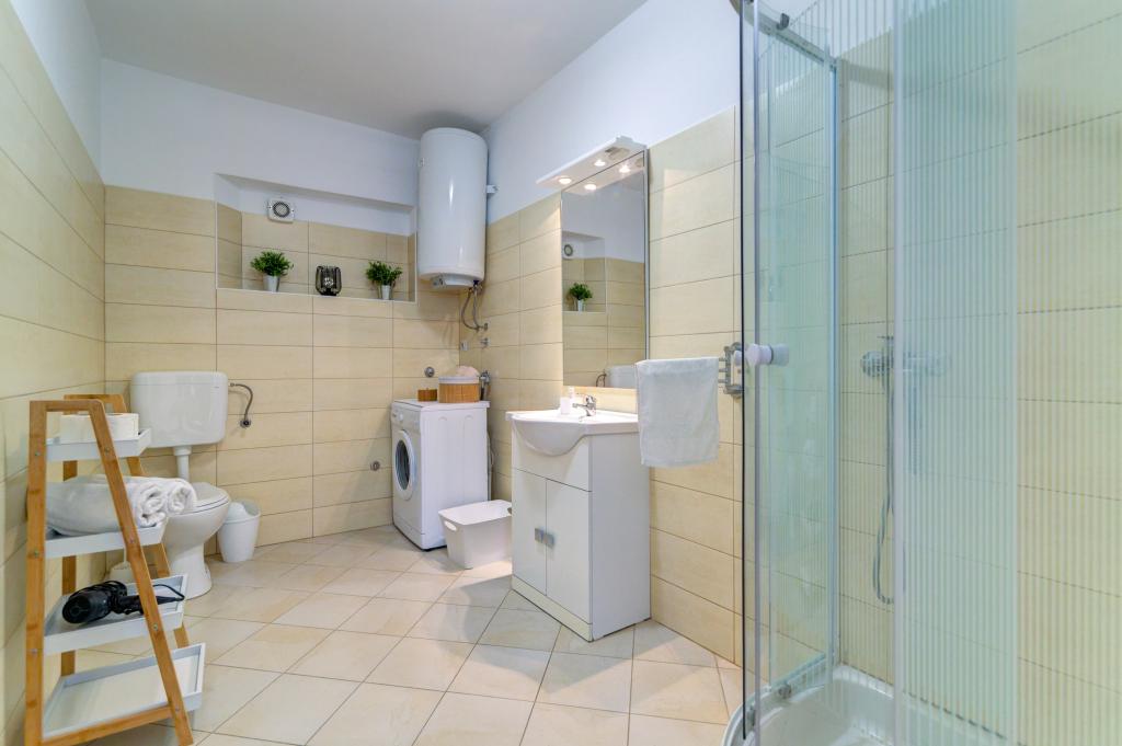 En stor, komfortabel lejlighed, veludstyret, med aircondition, dog uden opvaskemaskine. Det er som i beskrivelsen og billederne. Ejeren var meget rart; Vi kommunikerede på engelsk, men du kan også kommunikere på det "slaviske" sprog. Det tager et par minutter at gå til den nærmeste strand gennem villaveje, krydse en trafikeret vej og 200 trapper for enden. Det er bestemt det værd, fordi det er smukt! Selvom det er lille, var der hver gang vi var der plads til seks af os (vi var i Senj i begyndelsen af juli). På siden af stranden er der et sted hvorfra man kan hoppe i vandet, man kan også krydse vandet eller svømme til en lignende strand ved siden af, eller videre til klipperne. Der er en kilde på stranden (svarende til andre steder i området), som giver en meget interessant effekt. Tæt på kysten samler det friske, køligere vand sig i et tyndt lag på overfladen, over det varmere havvand, før det blandes med det i det rislende hav. I centrum af Senj er der to store supermarkeder (5 minutter i bil fra lejligheden), restauranter og isbarer. Der er også to delvist betonede strande i centrum. Man kan parkere ved dem begge, og på den ene er der en hoppeplatform. I nærheden er der to baner, hvor vi efter solbadning spillede internationale fodboldkampe indtil solnedgang. Vi havde ikke tid til at besøge bjergene omkring byen, men det er bestemt det værd.