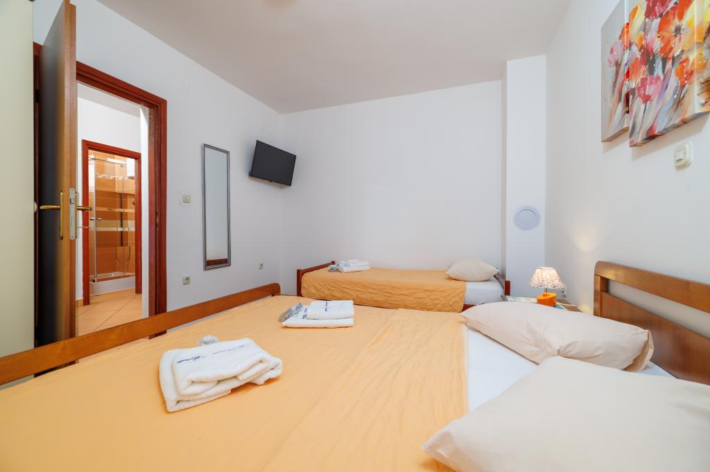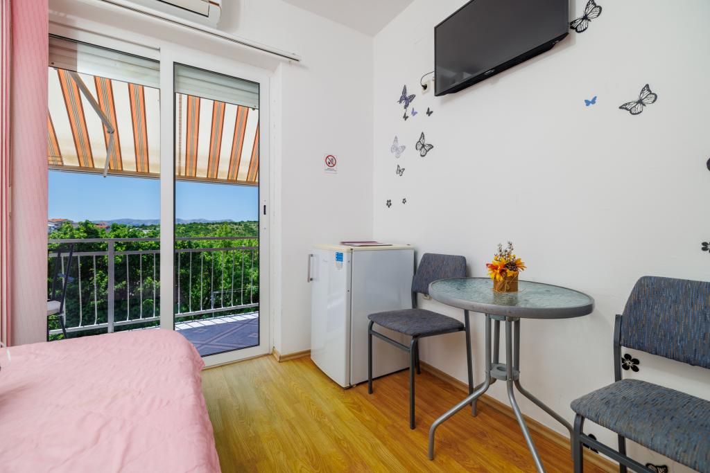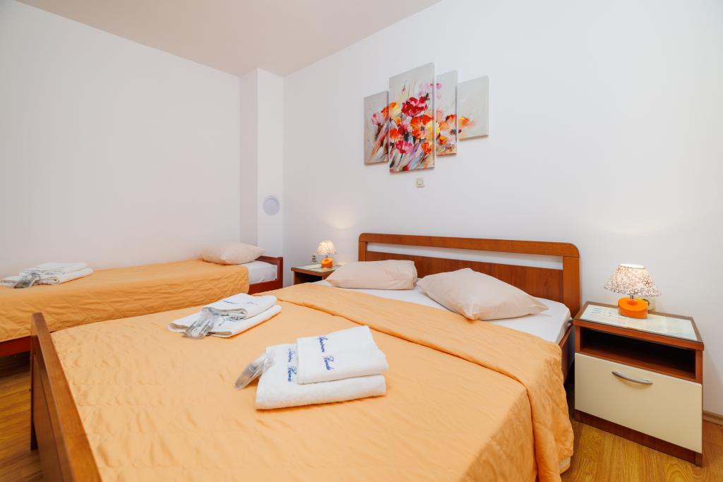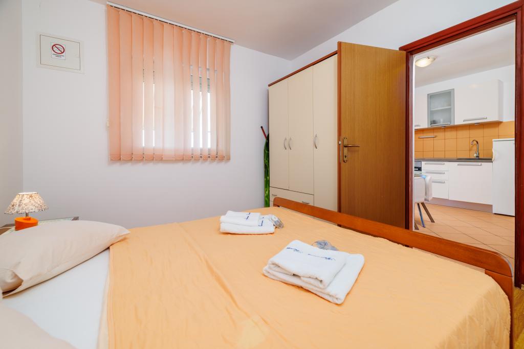 Komfortable værelser, del af rummet er et badeværelse, balkon, køleskab. Det er beliggende i en meget rolige del af byen og kun 5 minutter fra stranden. Det er aircondition, og parkering for køretøjet. I haven har en grill og et bord med stole, så det er muligt og spise. Mario og hans familie er meget service og er altid klar til at besvare dine spørgsmål. Tak for din korte, men smukke rum. Tina og Tom