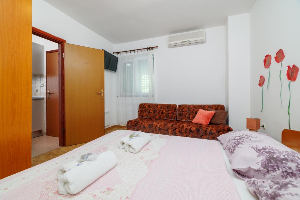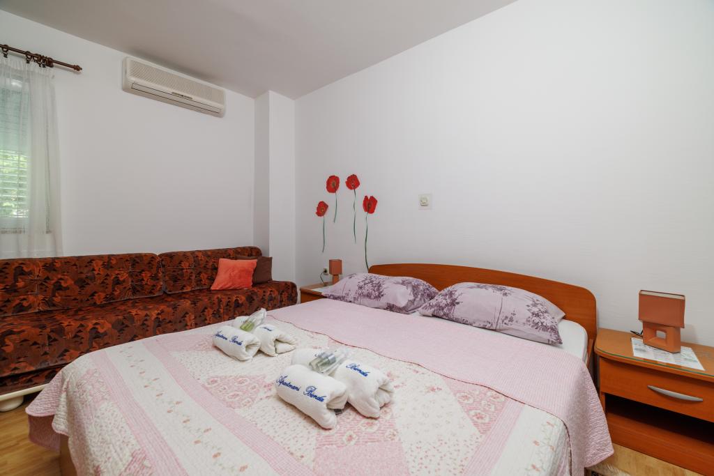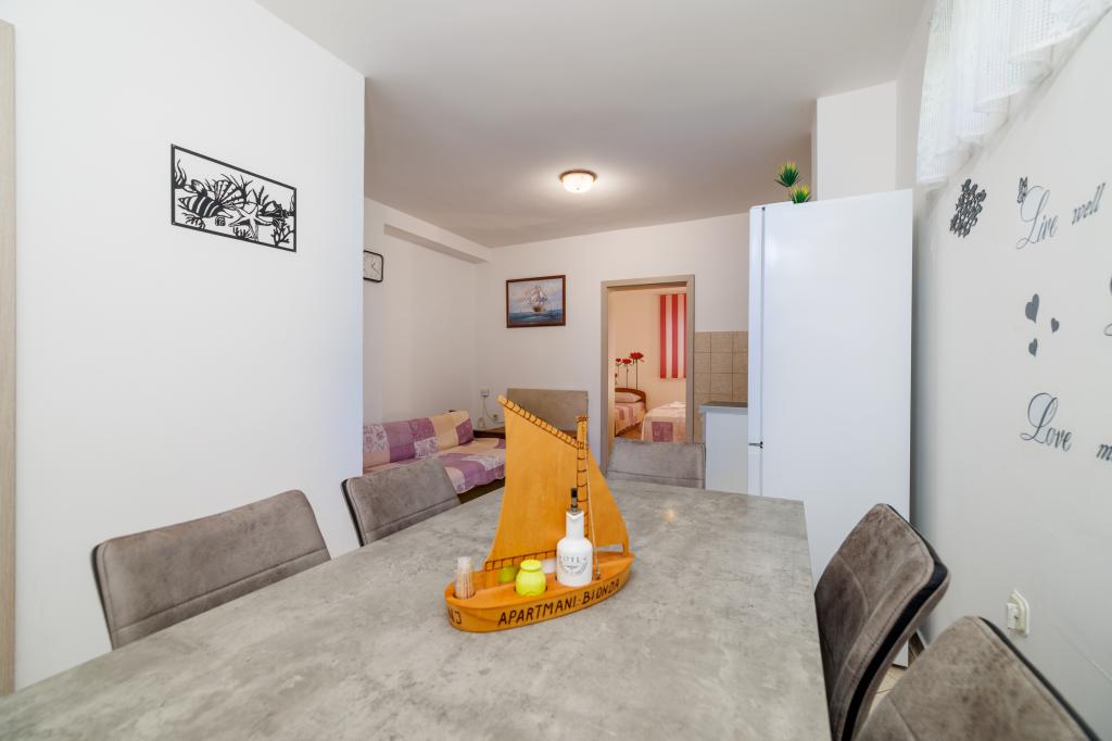 Meget pæn bolig (værelser med badeværelse), med en stor parkeringsplads foran huset, der er beliggende i en meget rolig del af byen. Minus er, at det er lidt sværere at finde (der er ingen gadenavne og GPS kan ikke finde, Dolac Street), og den smalle sidegade og parkerede biler efter hende, og hun er stadig smalle. Meget venlig vært Mario er kommet for os ikke at vandre, og vi sparer tid. Vi hermed endnu en gang vil jeg gerne takke familierne Biondić på den vidunderlige ferie. Henstilling til alle, der ønsker at vågne op til fuglesang og duften af naturen. Se dig igen ..