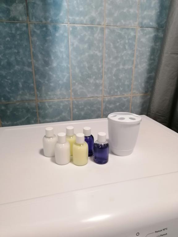 Velkomstgave til vores gæster: Juice, Nesscafee, te, sticks, banan, shower gel 50ml, hårshampoo 50ml, hårbalsam 50ml. Lejligheden har rent sengelinned, håndklæder og en hårtørrer.