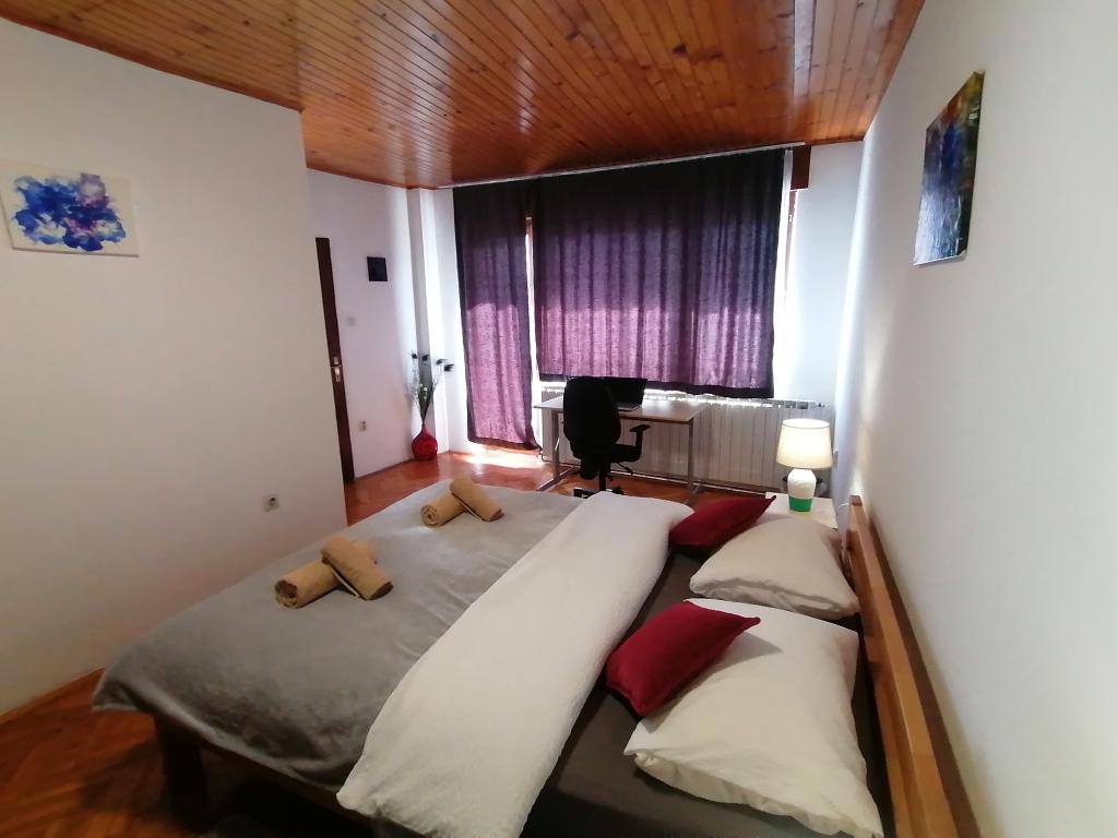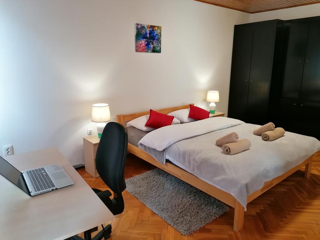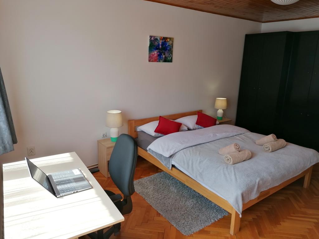 Velkommen til vores charmerende og rummelige lejlighed på 65 m², beliggende i det rolige distrikt Dubec, Sesvete! Kun 400 m fra den vigtigste bus- og sporvognsstation er det det perfekte sted for din ferie eller forretningsophold. Nyd en lys stue med en spisestue til 4 personer, et fuldt udstyret køkken (komfur, køleskab) og et komfortabelt soveværelse med en seng (160x200 cm) og en premium madras og kvalitetspuder. Slap af på balkonen med din morgenkaffe eller på badeværelset med badekar. Lejligheden har aircondition, gratis Wi-Fi og 24/7 sikkerhed takket være Reolink-kameraet. Kun 3 minutters gang adskiller dig fra butikken og markedet. Trg ban Jelačić er 35-45 minutter væk med sporvogn, Maksimir 20-30 minutter i bil, og Jarun kun 25 minutter. Zagreb er et centralt transportknudepunkt, der forbinder Europa med Adriaterhavet, og vores lejlighed har fremragende forbindelser til alle større motorveje: A3 til Slovenien og Vesteuropa, A4 til det nordlige Kroatien og Ungarn, A1 til Dalmatien og A2 til Slovenien.