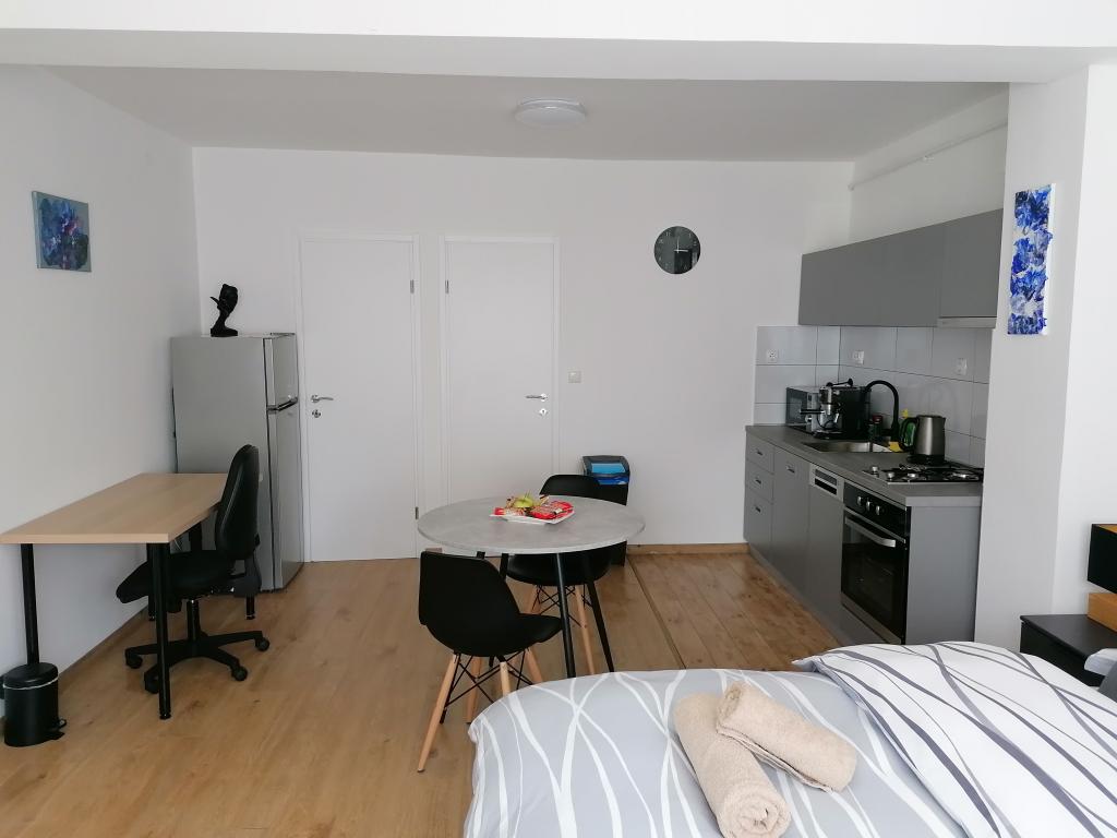 Kudos til værtinden. Hun er meget venlig, imødekommende. Studiet er pænt og rent. Du har alt hvad du behøver til dit ophold. Slik på bordet er et godt tegn på opmærksomhed. Parkeringsplads er 20 meter fra boligen. Bebyggelsen er stille. Alle anbefalinger fra mig
