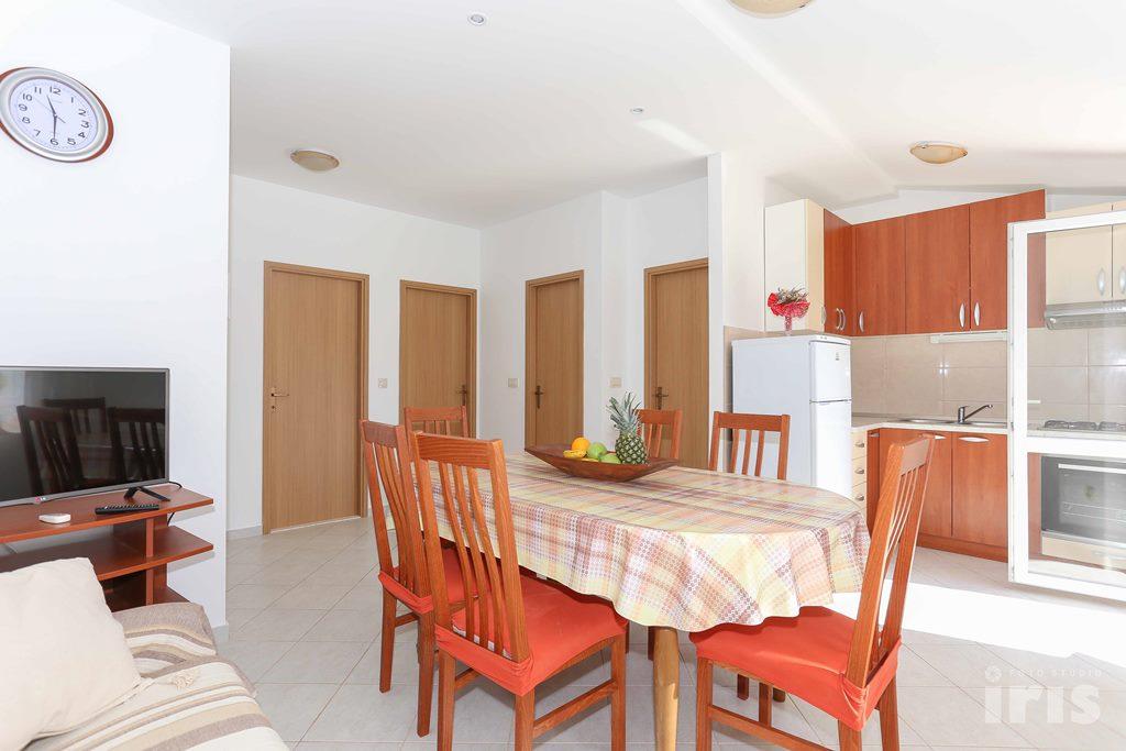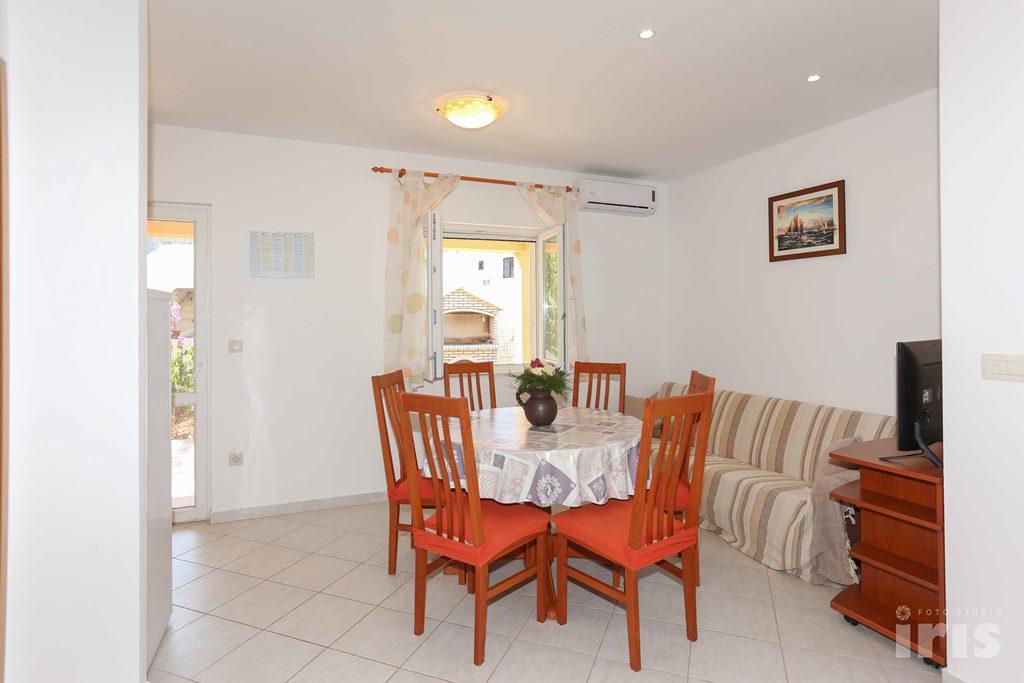 Huset ligger 50 m fra havet i et roligt sted nær Trogir, Sevid. I dette hus tilbyder vi 3 lejligheder 4+2. Lejlighederne har et fuldt udstyret køkken, satellit-tv og aircondition - varme, Wi-Fi internet. Parkering er forudsat, fortøjning også. I nærheden af huset har du alt hvad du behøver, strand, restaurant, supermarked, kaffebar. Lejlighed 1 (4+2) * * * Det er stuelejlighed, ca. 50 m2, med 2 værelser, lille toilet, større toilet, køkken, stue med sofa til 2, balkon, aircondition, wifi, parkering. Lejlighed 2 (4+2) * * * Lejlighed på 1. sal, ca. 75 m2, 2 værelser, lille toilet, større toilet, køkken, stue med sofa til 2, balkon, aircondition, wifi, satellit-tv, parkering. Lejlighed 3 (4+2) * * * På anden sal har den ca. 75 m2, 2 værelser, lille badeværelse, større badeværelse, køkken, stue med sofa til 2, balkon, aircondition, wifi, satellit-tv, parkering.