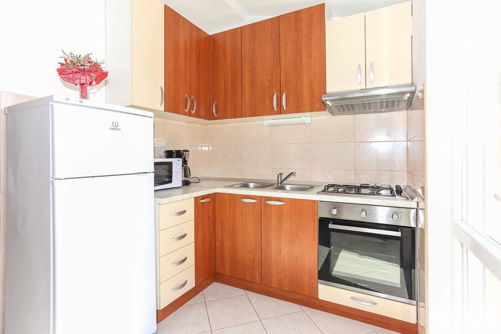 Fin lejlighed, flinke ejere. Der var vejreparationer i området, vi fik et fladt dæk på vej til vores ophold. Ejerne tog cyklen til service og fik dækket udskiftet. Næste dag løb vandet ikke. Ejerne var igen hurtige og fik hurtigt løst problemet. En bager kommer til lejligheden næsten hver dag. Lejligheden har en dejlig terrasse med udsigt over havet. Havet er tæt på på begge sider af øen. På den ene side er der moler og en strand, på den anden side er der en dejligere strand, behagelig for små børn. Dejligt sted at snorkle.