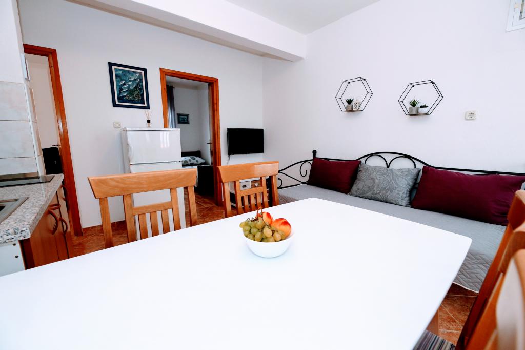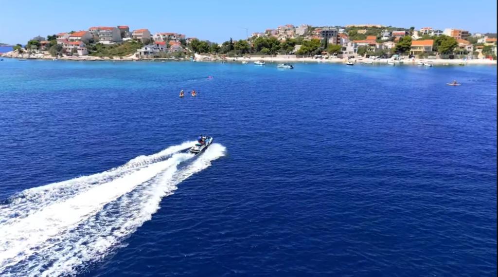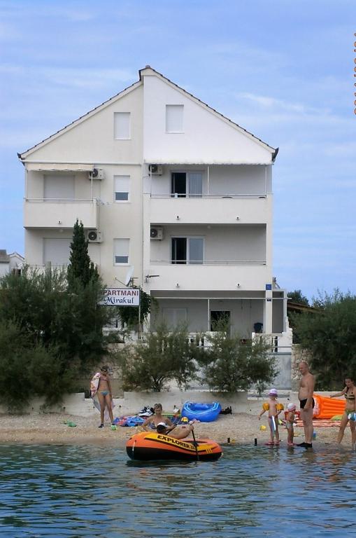 Mirakul Apartments ligger i Sevid, en lille by på Trogir Riviera, halvvejs mellem Trogir og Primošten. Det er et roligt område, ideelt for dem, der ønsker en ferie væk fra byområdernes larm, men hvis de ønsker at besøge berømte turistdestinationer, er i nærheden Rogoznica (10 km), Primošten, Trogir (18 km), Split, Šibenik (45 km), Krka National Park (60 km)... Lejligheder Mirakul-Sevid består af to huse med 16,0 m til 2,0 m. vores gård ligger kun 5 m fra stranden. Stranden er stenet og velegnet til børn.