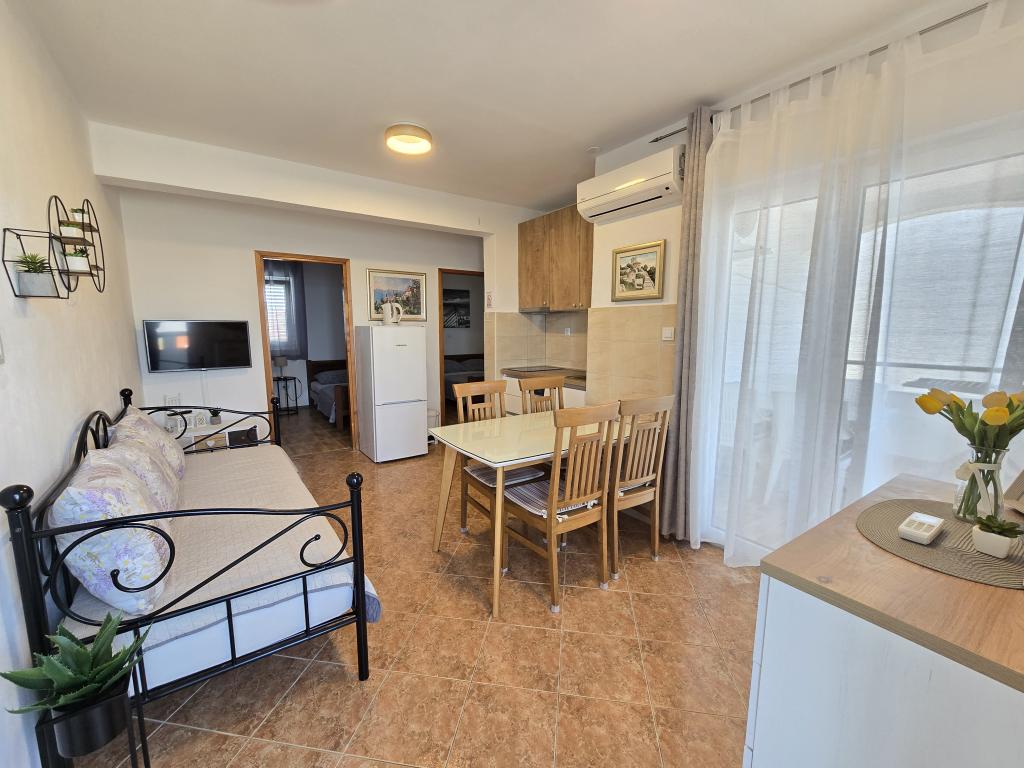Lejligheden ligger lige ud til havet. Renheden er 10+. Vi har aldrig været på et så rent sted. Ejeren er meget venlig. Lejligheden havde alt til et ophold, fra klude til tabletter til opvaskemaskinen og toiletpapir. En velkomstdrink ventede os. Du har til din rådighed en bowlingbane, en volleyballbane, bordtennis og bordfodbold. En udendørs grill og et sted at hænge ud