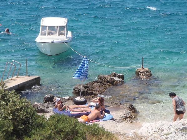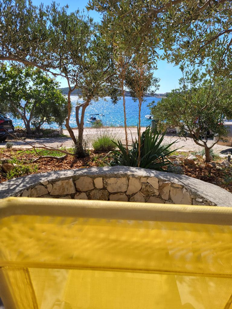 Stor og ren lejlighed. Stor terrasse, der er havudsigt noget begrænset af nogle træer. Hav og strand super tæt. Krystalklar som næsten overalt i Kroatien rent vand. Meget roligt område. Super flot udlejer plus pæne naboer. Kom noget eventyrlystne. Gaderne er meget smalle, men gennemførligt med tålmodighed :) Alt i alt en fantastisk ferie!