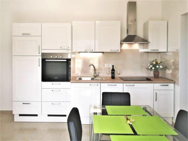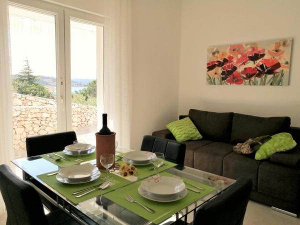 Turistskat er inkluderet i prisen.Vi havde dejlige dage i denne meget nænsomt møblerede og yderst velholdte lejlighed - den er yderst veludstyret (fra køkkenredskaber til parasoller, liggeunderlag, tæpper til plejeprodukter på badeværelset). En skøn terrasse, velholdt grund, fantastisk adgang til havet, fantastisk udsigt, rummelig garage til bilen.....listen er uendelig! Kun at anbefale Oven i købet er der en vært, der driver huset med hjerte - fantastisk Restauranten og supermarkedet var lukket i begyndelsen af juni, men det generede os ikke. Der er mange muligheder i området. Tak Tihomir, venlig hilsen