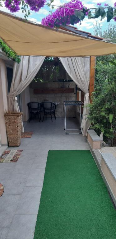 Nybygget og fuldt møblerede lejligheder. Velholdt have med en have og en overdækket område til daglig hviletid, som direkte adgang til stranden! Sevid er en lille landsby i nærheden af ​​Trogir med parcelhuse og konkrete strande og er ideel til en rolig ferie. Det er en Middelhavet landsby uberørt natur, krystalklart hav, der emmer rolig og stille, langt fra bycentre og daglige trafikpropper.