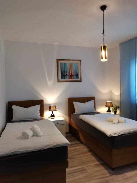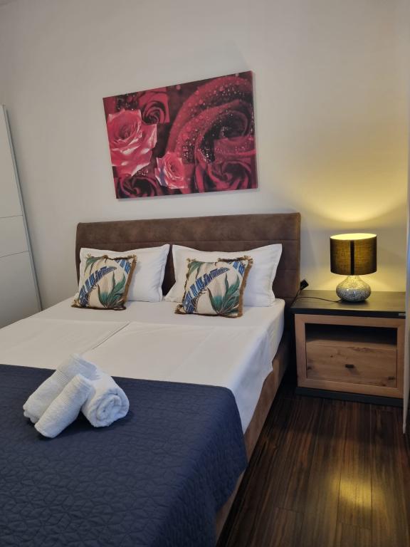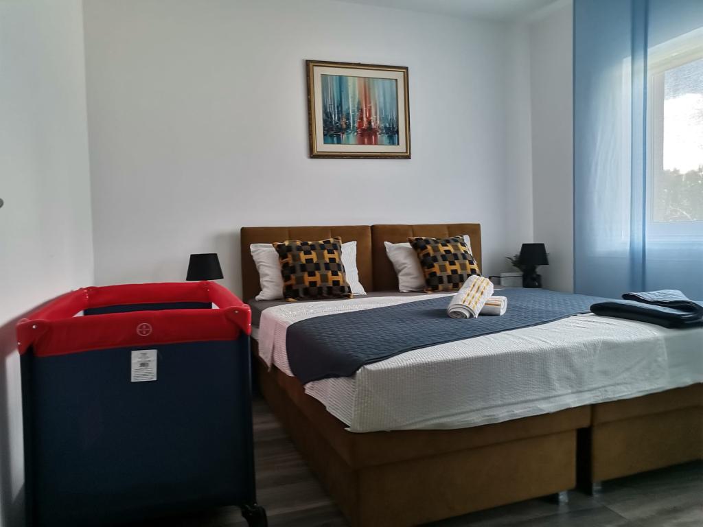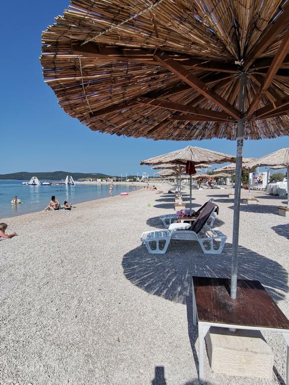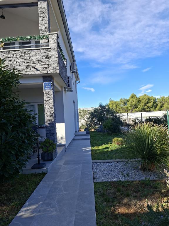 Ferie med familie og venner uden stress og larm i fredelige omgivelser. Afstande 1,8 km fra den smukke strand "Rezalište" med gratis parkering og rigt indhold, 4 km fra byens centrum, 10 km fra NP Krka, og alt hvad du behøver, butikker, restauranter, fastfood, apotek, fodbold og basketballbane med motion udstyr, alt inden for 0,4 km.Prisen inkluderer parkering for op til 3 køretøjer i gården, samt turistskat.