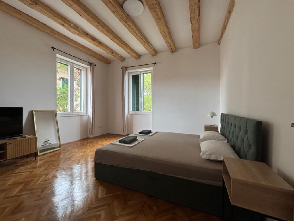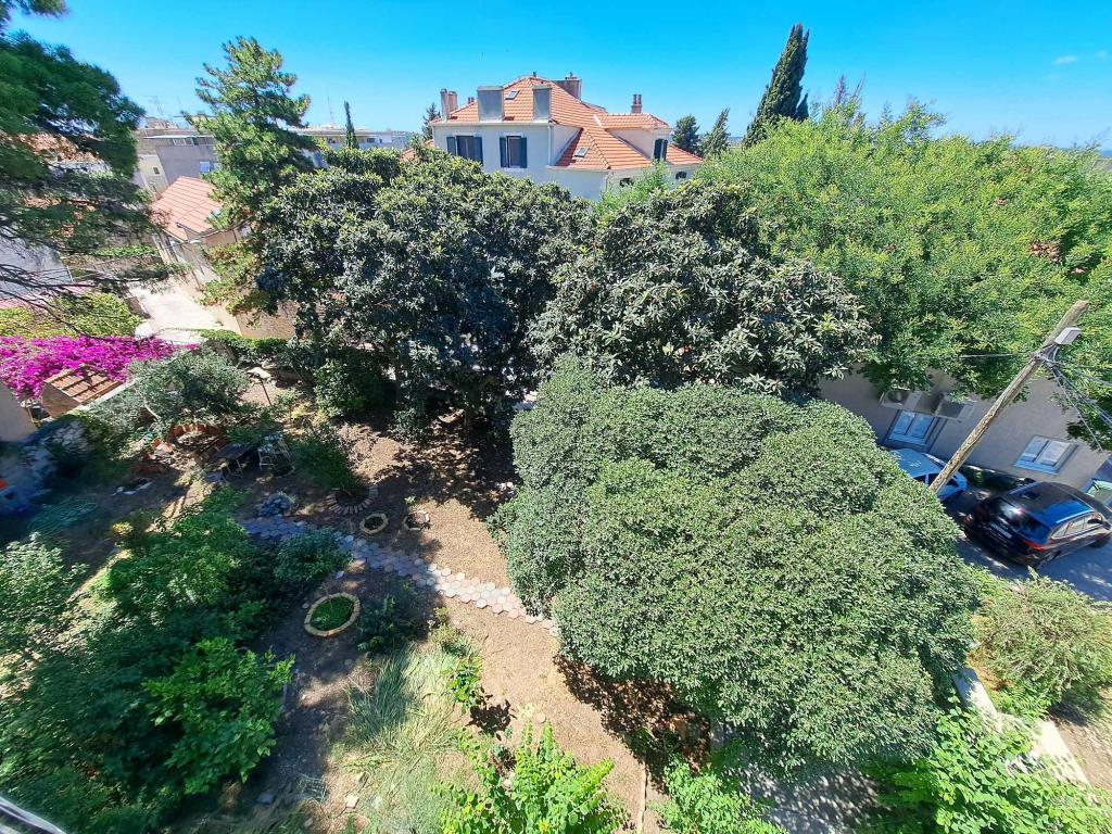 Velkommen til Apartment Spas! Langs St. Spasa-gaden, som går ned forbi St. Spasa-kirken, når du byens centrum på få minutter til fods. Fra den varme middelhavssol vil du blive beskyttet af skyggen fra de århundrede gamle cypresser, pittosporum-træer og fyrretræer, der pryder gaden og haven foran boligen. I haven kan du grille og slappe af på liggestole og bænke. Lejligheden ligger på anden sal med udsigt over Šibenik-bugten og St. Michael-fæstningen, som kun ligger ti minutters gang væk. Der er to soveværelser med dobbeltsenge, en stue med en sovesofa, et fuldt udstyret køkken, et badeværelse med bruser og en rummelig balkon, hvor du kan nyde din morgenrutine med fuglesang eller udsigten til magiske solnedgange. Du finder Spas i en stille blindgyde, som er tæt på alle faciliteter, men virker kilometer væk fra byens travlhed. Der er en privat parkeringsplads i nærheden af boligen.