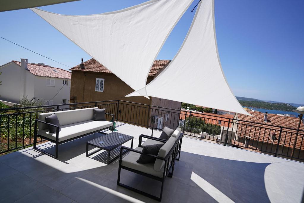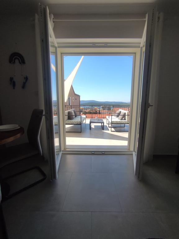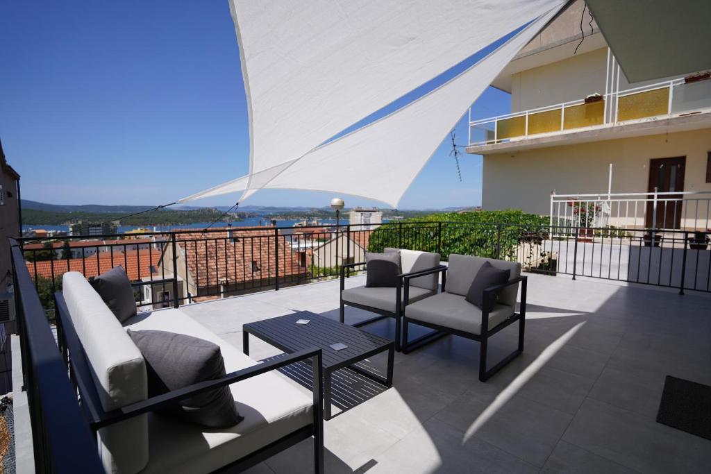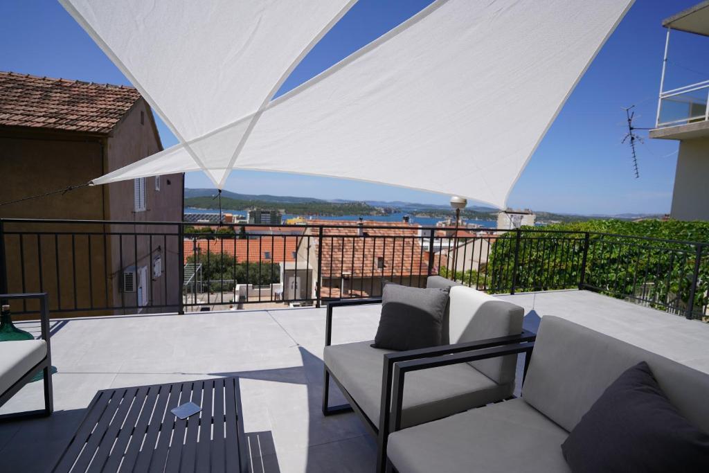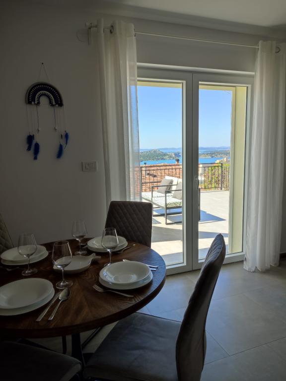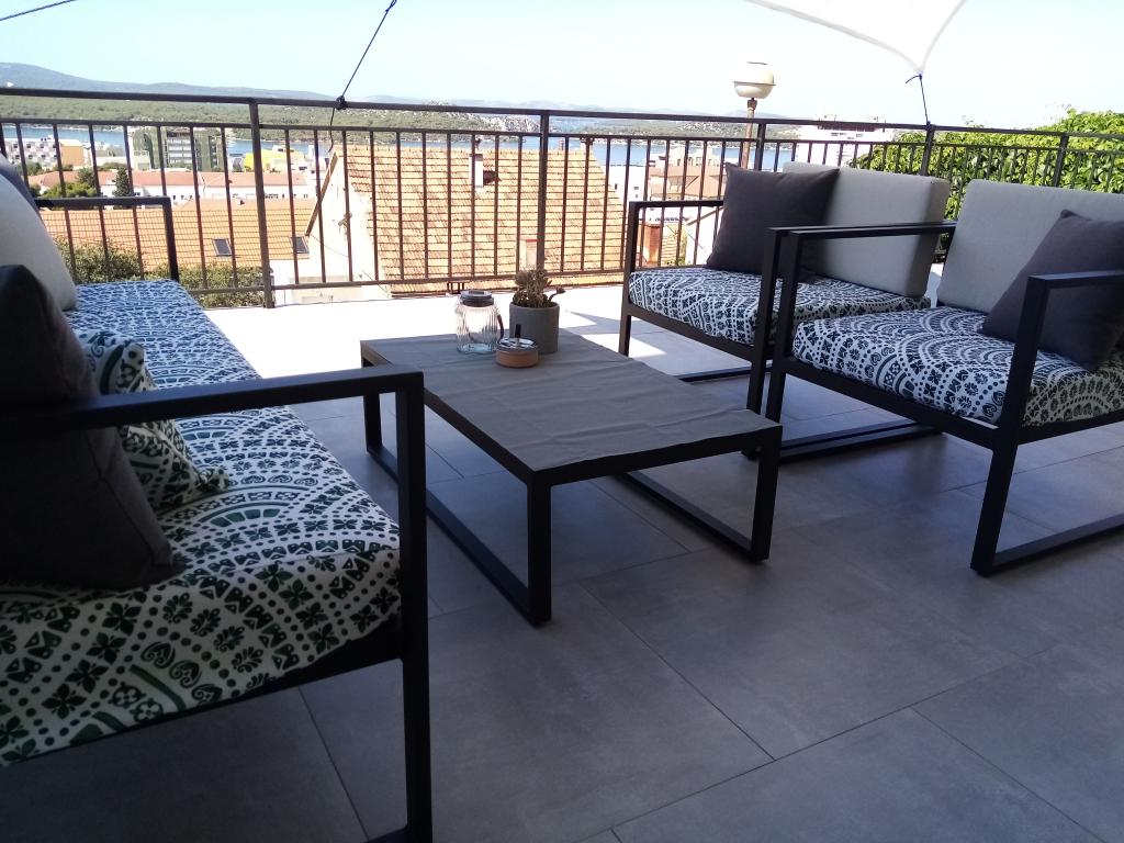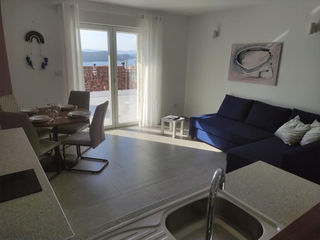 Lejlighed i en rolig del af byen Šibenik Lejligheden er beliggende 10 minutters gang fra den gamle bydel i Šibenik og i umiddelbar nærhed af alle byens faciliteter. Havet ligger 500 meter derfra, og de nærmeste strande ligger kun 5 minutters kørsel derfra. Lejligheden er fuldt møbleret og udstyret med alle faciliteter og har adgang til en terrasse med en smuk udsigt over Šibenik bugten og byen.