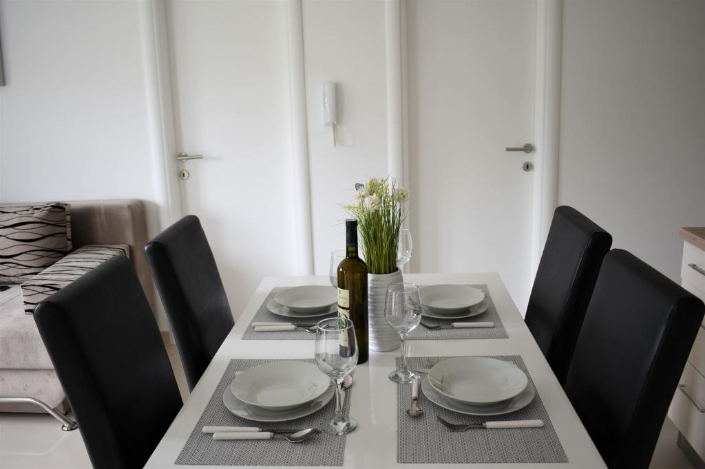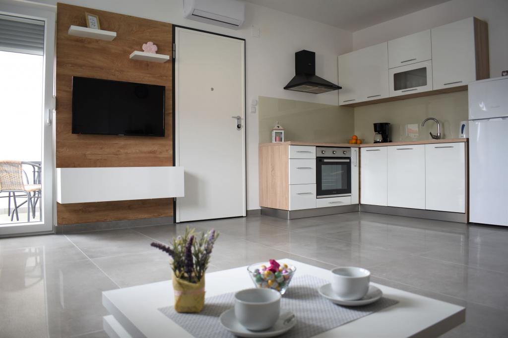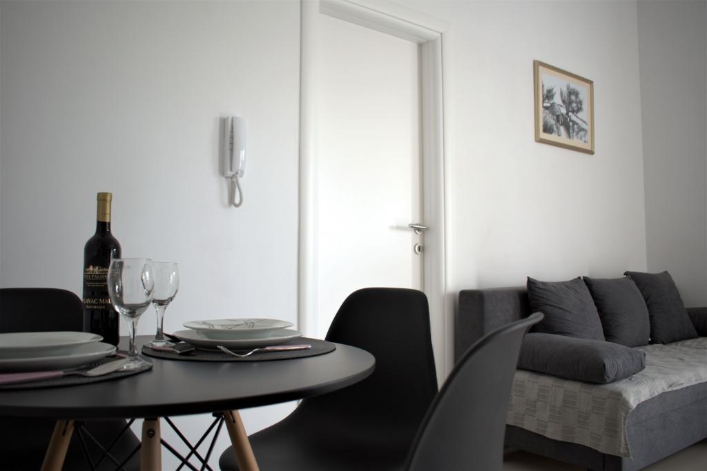 Fuldt og moderne udstyrede lejligheder i en stille del af Sibenik med en smuk udsigt over Sibenik-bugten og byen. Alle enheder har aircondition og har gratis internetforbindelse. Parkering er også gratis og ligger i bygningen og sikkerheden ved bygning forbedres Ekstern videoovervågning Hver enhed har sit eget udendørs rum (loggia eller balkon) med udsigt over miljøet, havet og byen. Anlægget ligger 5 minutters gang fra den mest berømte bystrand Banj, som inkluderer en restaurant, strandbar og sportsbaner. Ligeledes kun 15 minutters gang fra bygningen gennem den traditionelle middelalderlige forstad til Sibenik Dolac er den gamle bydel med smukke historiske arkitektoniske præstationer såsom St. Jakov, medtaget på UNESCOs verdensarvsliste og St. Michael fæstning.