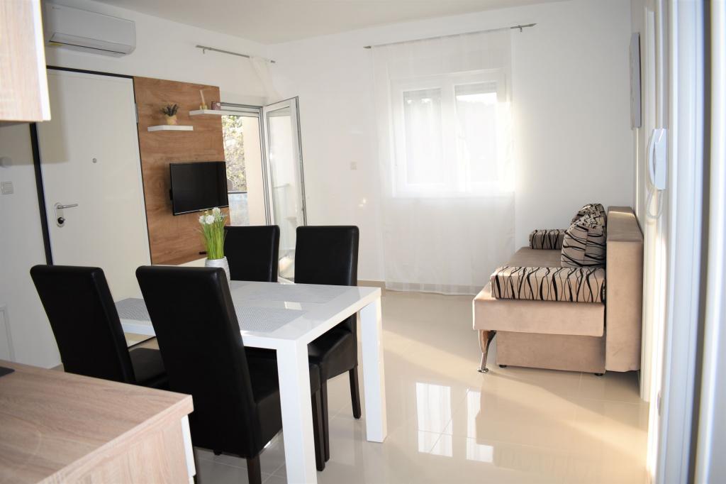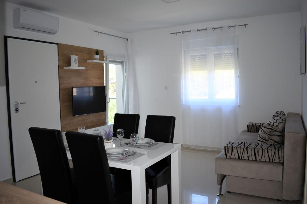 Vi var fire i en lejlighed til fire personer. Værtinden var venlig og diskret. Alt, hvad der var nødvendigt for et familieophold, var tilgængeligt (vaskemaskine, ovn, elkedel, service osv.). Der er rigelig parkeringsplads foran, så du behøver ikke bekymre dig om parkering og betaling andre steder. Beliggenheden er fantastisk, fordi den er meget tæt på Banj-stranden, og det er også et godt sted at gå til fæstningen St. Michael og katedralen St. James, hvor der er gode restauranter og caféer. En dejlig og behagelig tid.