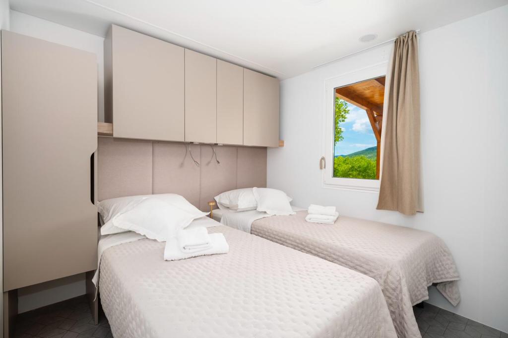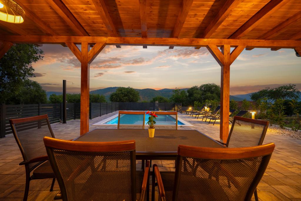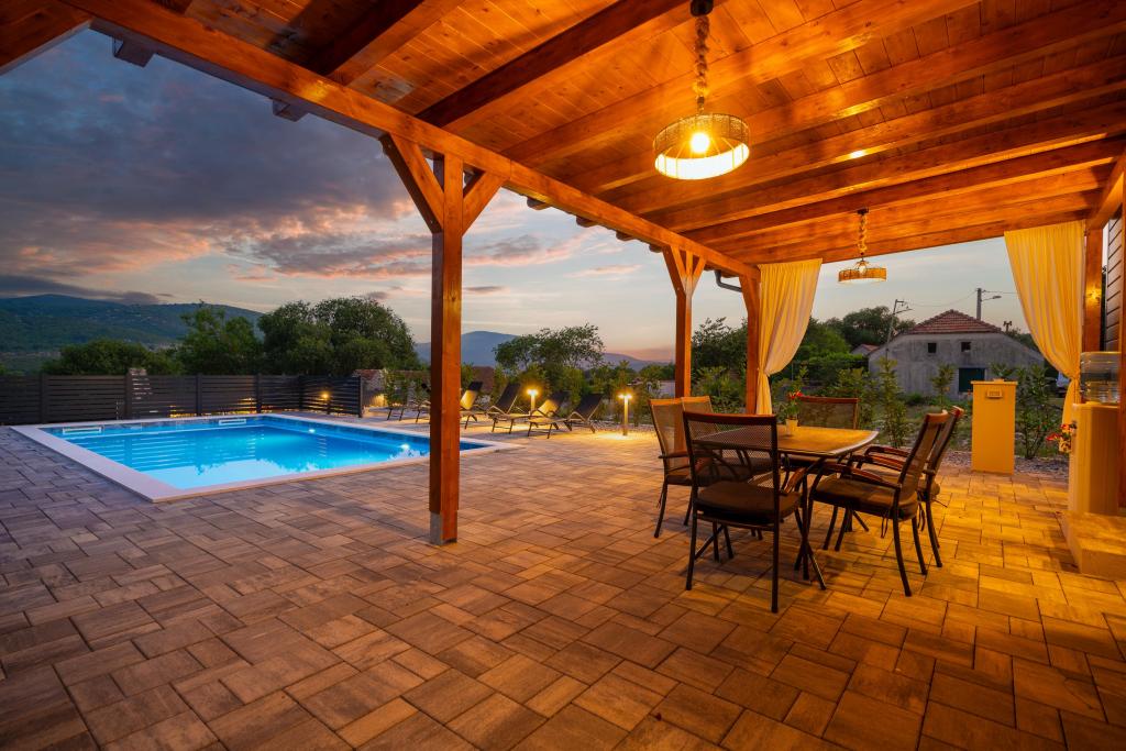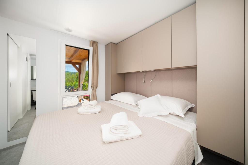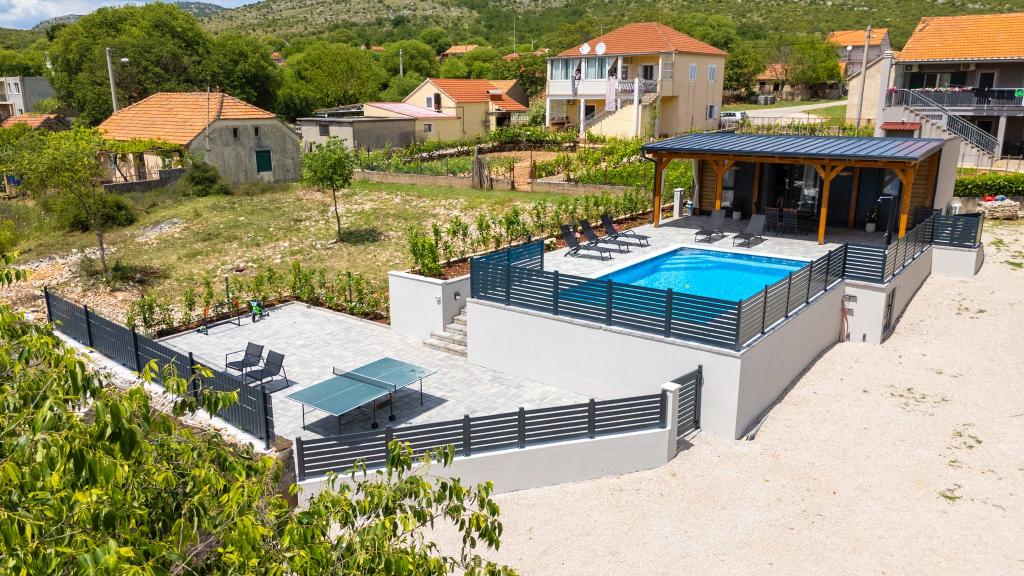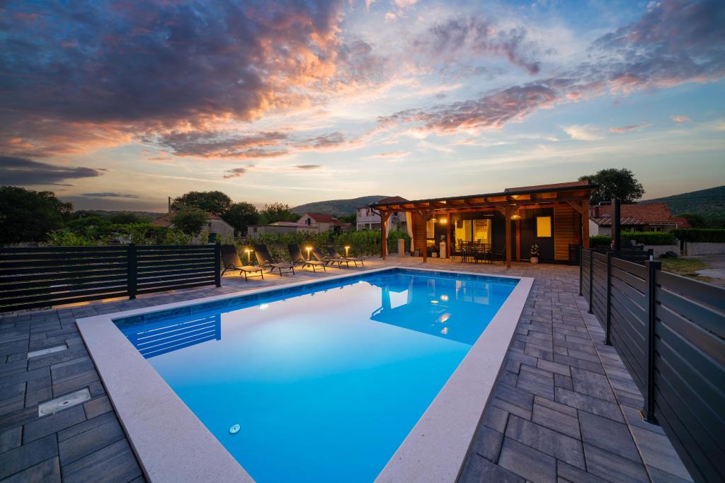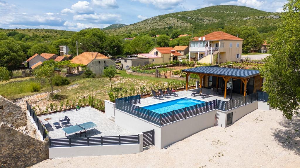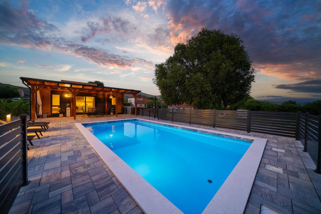 Fuldt og moderne udstyret mobilhome på landet, i naturen. Vi har en stor opvarmet pool 4×8 og 150 cm dyb. Poolen er privat og omgivet af et hegn og grønne områder. Vi har en stor have, i den ene del er der plads til afslapning, bordtennis og en trampolin til de yngste. Ejendommen ligger 23 km fra byens centrum, 20 km fra stranden, 35 km fra Split lufthavn og 30 km fra Krka Nationalpark. I umiddelbar nærhed, 7 km fra motorvejen, er der indkørslen til motorvejen. Sibenik er en by rig på historisk arv, og har hele 4 stærke kulturer.