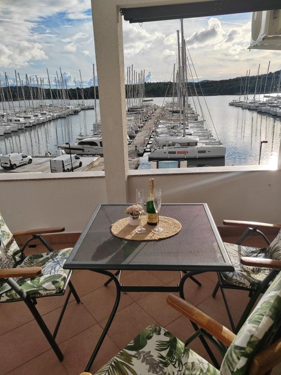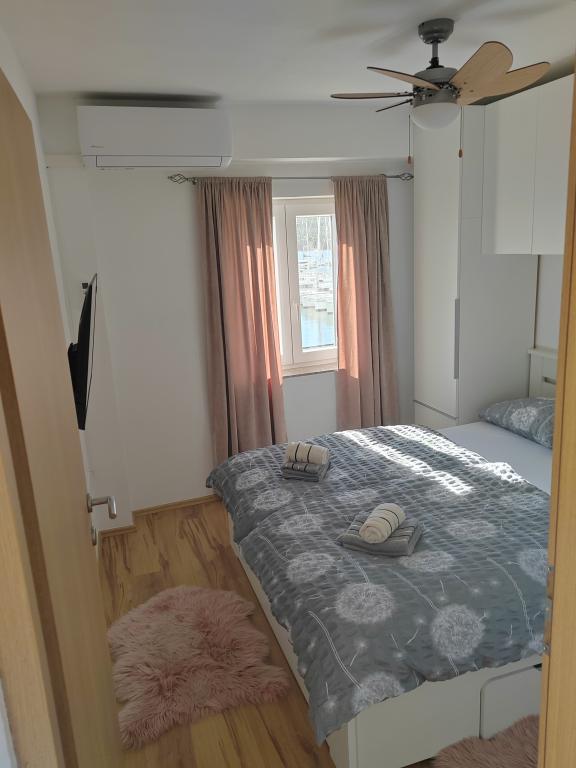 Huset ligger på Mandalina-halvøen i Šibenik med udsigt over havet (yachtmarina). Med to soveværelser, to badeværelser, stue, spisestue med køkken og terrasse med udendørs bruser. 5 minutters kørsel til byens centrum og supermarked, 5-10 minutters kørsel til den første strand.