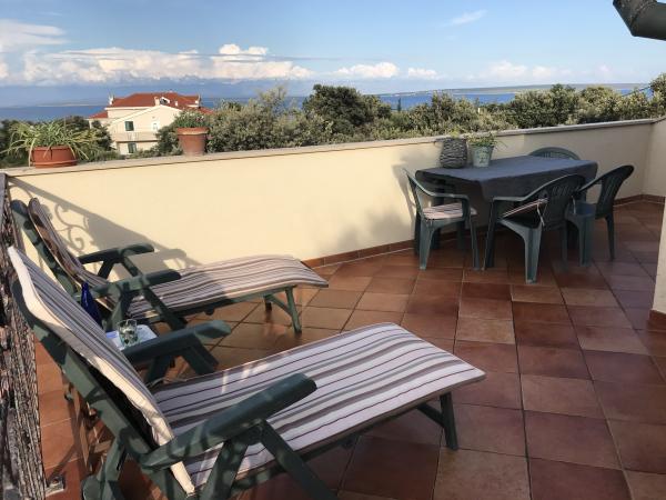 Lejlighed TENA (52 m2) ligger på første sal i et nyt familiehus. Den er fuldt møbleret og udstyret (aircondition, TV, internet). Den har to soveværelser med 2 senge i hver, og en ekstra seng til 2 personer kan bruges i stuen. Køkkenet er rummeligt med alle nødvendige apparater. Den rummelige terrasse tilbyder en smuk udsigt over havet, øerne Olib og Pag. Gæsterne har adgang til en stengrill i haven. Lejligheden ligger omkring 200 meter fra havet. Afstanden til byens centrum (butikker, restauranter, posthus og caféer) er omkring 3-5 minutters gang, og du kan nå Silbas vestkyst og smukke sand- og klippestrande på 5-10 minutters gang.