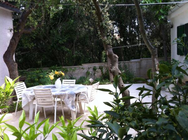 Familiens hus, 54m2, med 2 soveværelser, stue, 4 2 senge (dobbeltseng, to enkeltsenge 2 sovesofaer, hvis det er nødvendigt), køkken med opvaskemaskine, badeværelse, terrasse med grill dækket med vinstokke som naturlig beskyttelse mod solen, TV SAT, Wi-Fi, fladskærms, air condition, Vugge, hvis det er nødvendigt. Silba anbefale til familier med små børn, fordi der er ingen biler, de ældre til at hvile og fred, og romantikere elsker at smuk promenade på begge sider af øen.