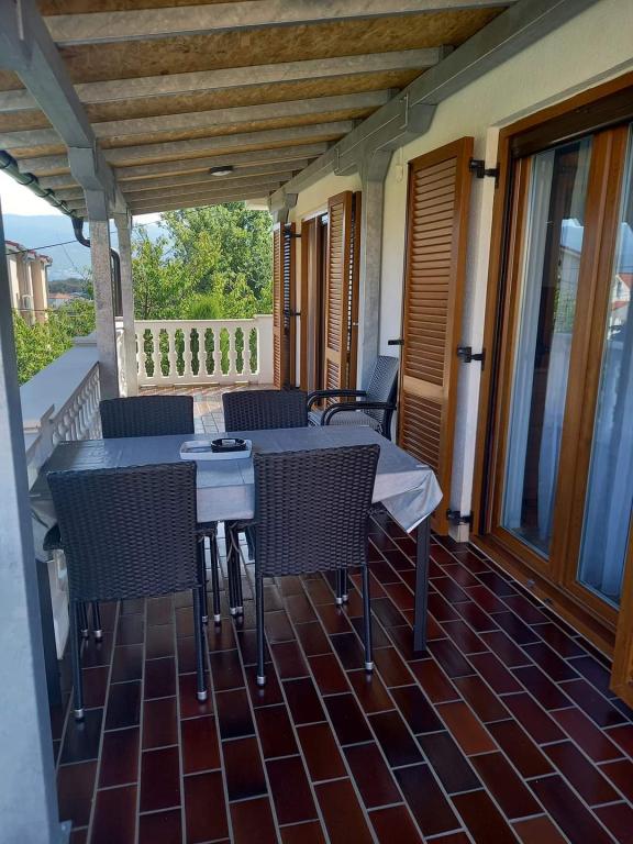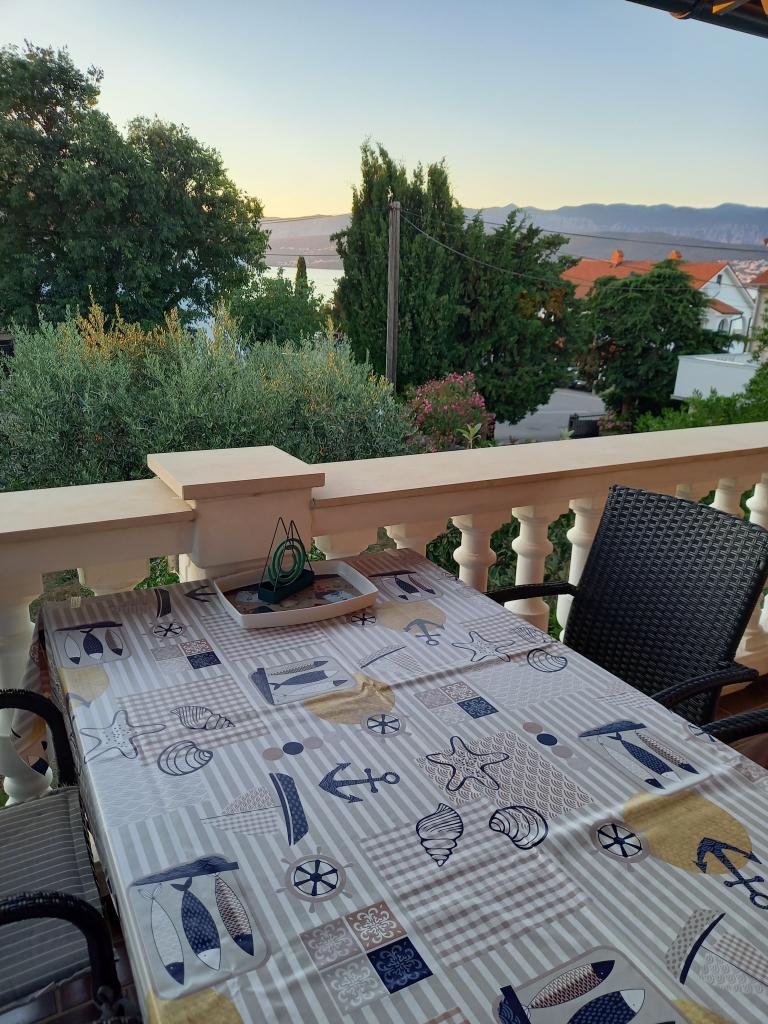 En 80 kvadratmeter stor lejlighed udlejes i den smukke lille grønne by Šilo på øen Krk, på første sal i et familieferiehus med en rummelig terrasse og havudsigt. Indkvarteringen er kategoriseret til 5+1 personer. Den består af et trepersonersværelse, et dobbeltværelse og en ekstra seng. Afstanden fra den første strand er 200 meter, fra sandstranden 300 meter og fra bymidten 200 meter. Parkering er tilgængelig i en indhegnet have.